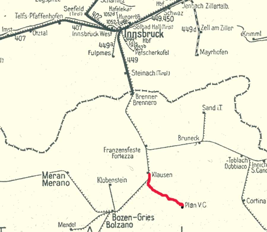 | Klausen/Chiusa | 0,0 | km 178,240 der Strecke der Brenner-Bahn |