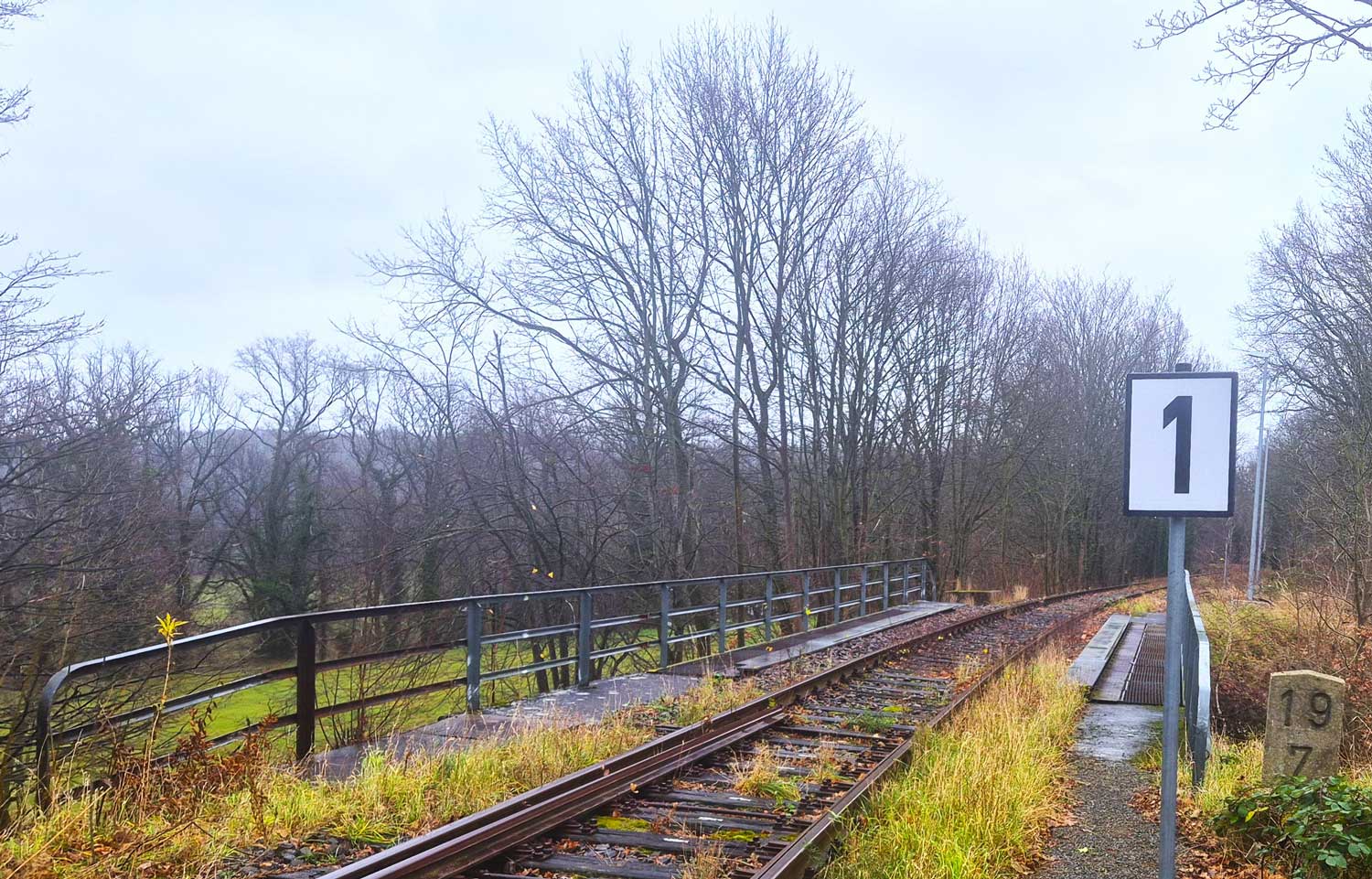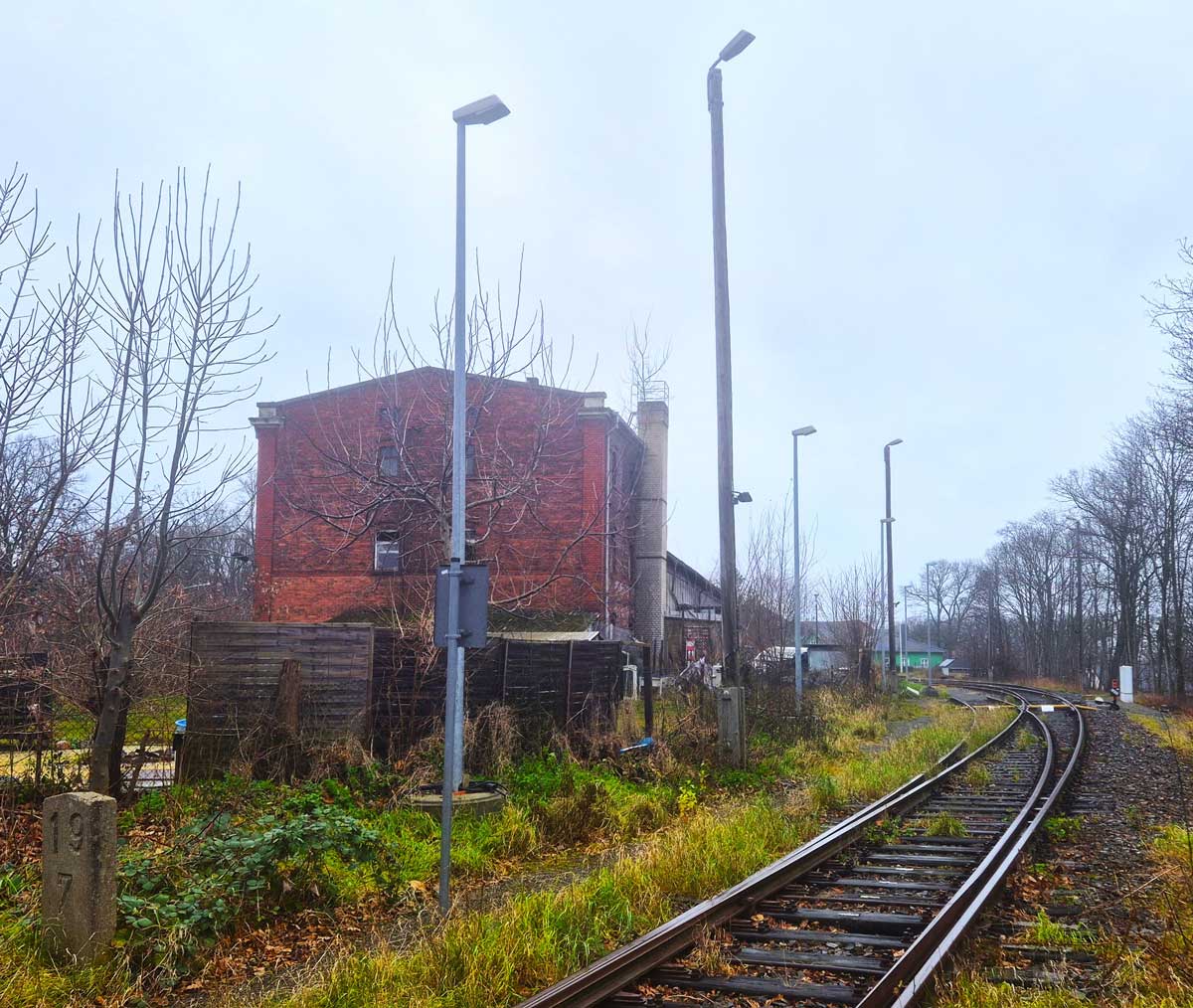 links das Anschlussgleis zur Lausitzer Grauwacke.