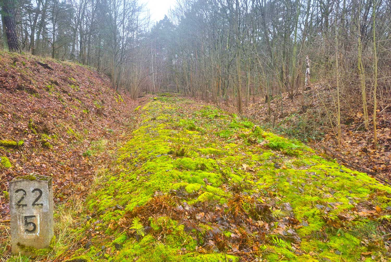 km 16,3 zwischen Ottendorf-Okrilla Nord und Laußnitz - man beachte den kreativ gestalteten Stein