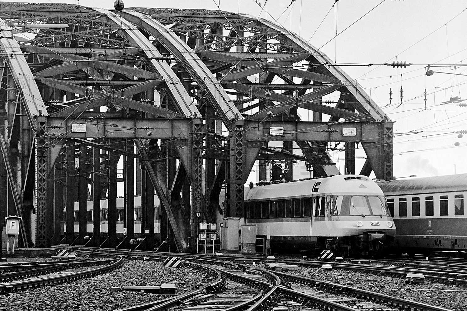 Blick auf die noch viergleisige Brücke über den Rhein