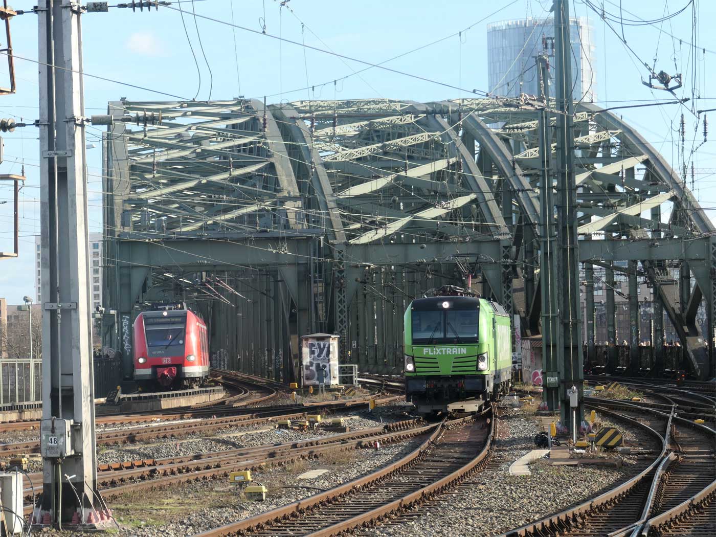km 0,6 auf der Hohenzollernbrücke - Blick Richtung Köln Hbf