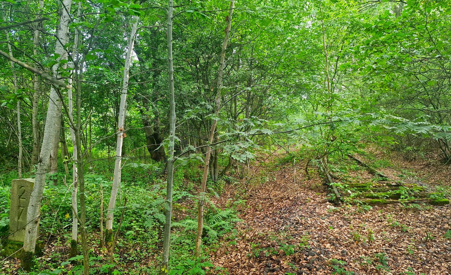 km 6,0 (Tafel und Stein) zwischen Hartmannsdorf (b Chemnitz) und Wittgensdorf ob Bf - Blick Richtung Limbach (Sachs)