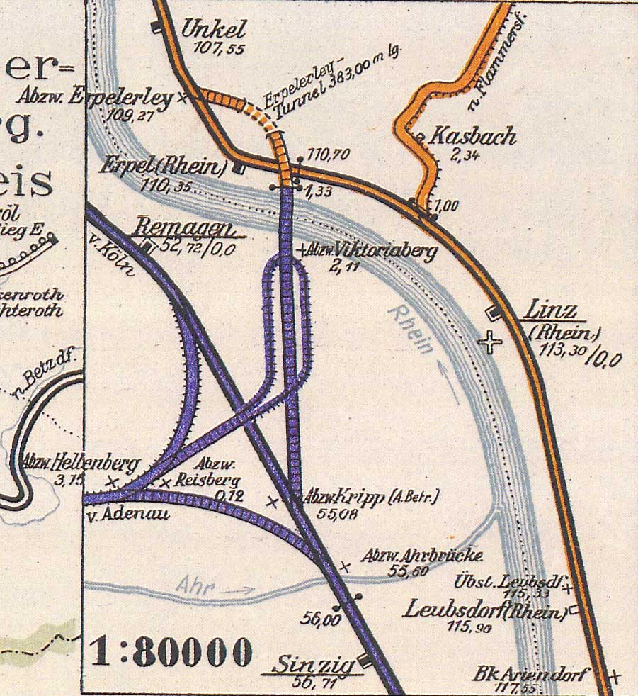 Verbindung von der Ahrtalbahn zur Brücke diagonal die linke Rheinstrecke