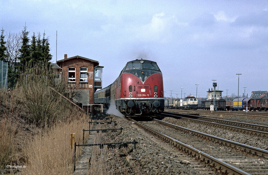 | Lübeck Hbf | -1,66 | km 0,0 der Strecke Lübeck Hbf 0,0 - Abzw Wr 4,70 - Neustadt (Holst) Gbf 29,39 - Oldenburg (Holst) 52,27 - Puttgarden Fährbf 88,59 (ab 1963 mit Fertigstellung der Fehmarnsundbrücke) |