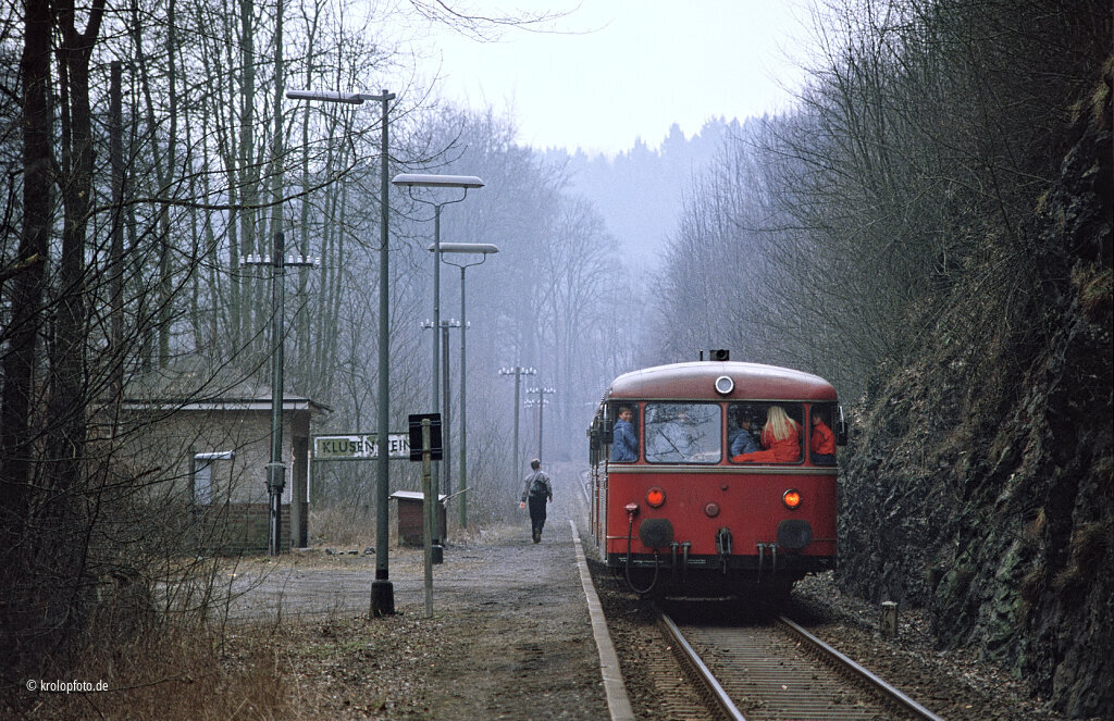 Die Garnitur 998 704/998 087/798 515 hat den Uhu-Tunnel durchquert und läuft nun als N 6459 (Fröndenberg- Neuenrade) in den Haltepunkt Klusenstein ein.