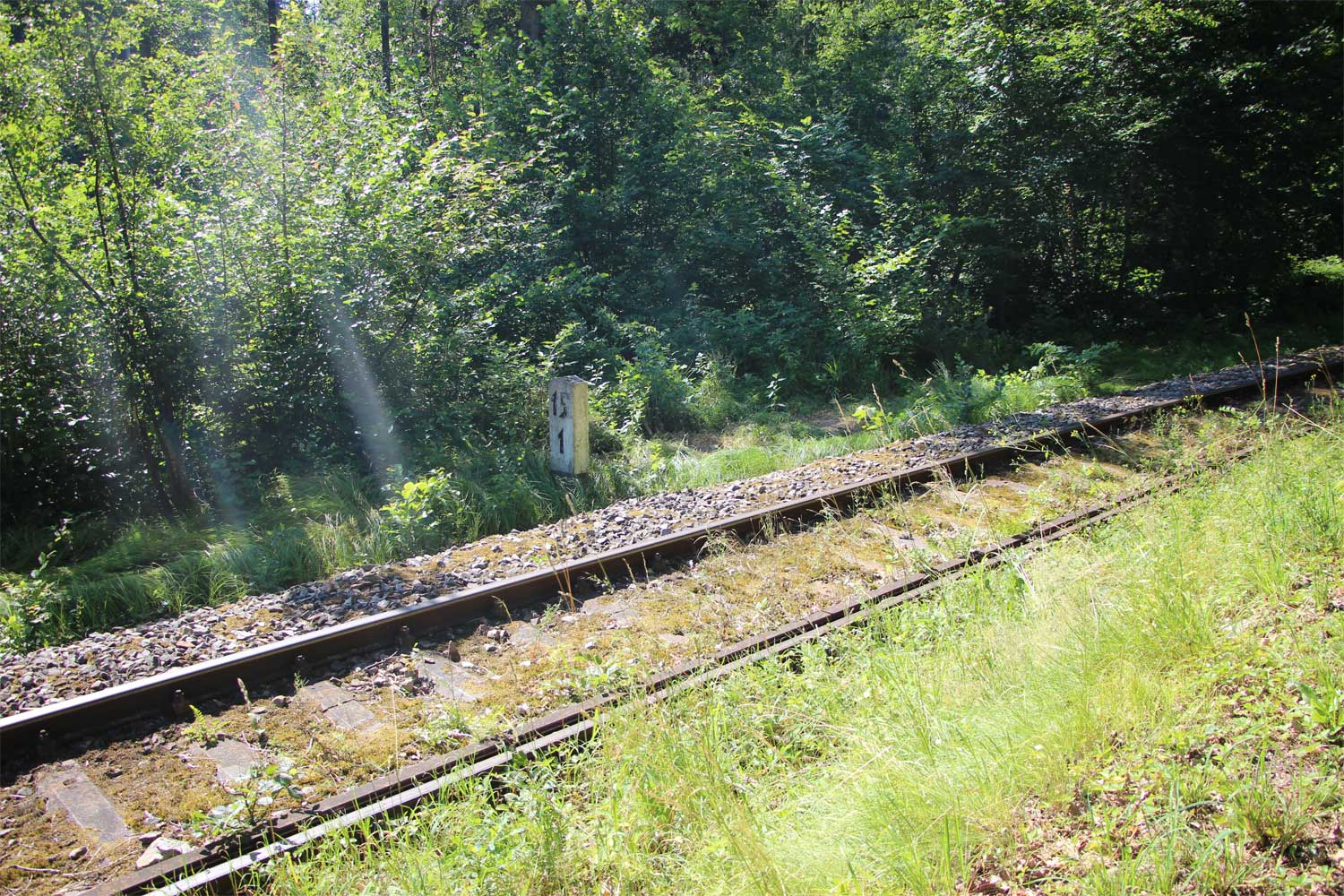 | Waldkirchen (Niederbay) | 37,98 | km 0,0 der Strecke Waldkirchen (Niederbay) 0,0 - Haidmühle (Niederbay) 25,3 - Staatsgerenze Deutschland/Tschechien 26,768 = km 69,715 - Nové Údolí 69,615 - Černý Kříž 61,866 - Číčenice (dt.: Zitschenitz) 0,0 |