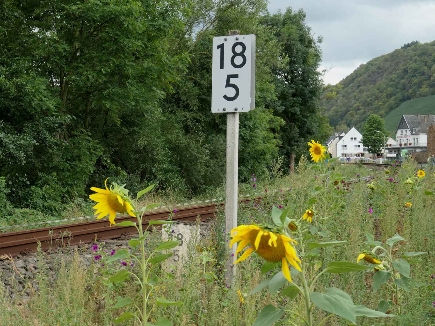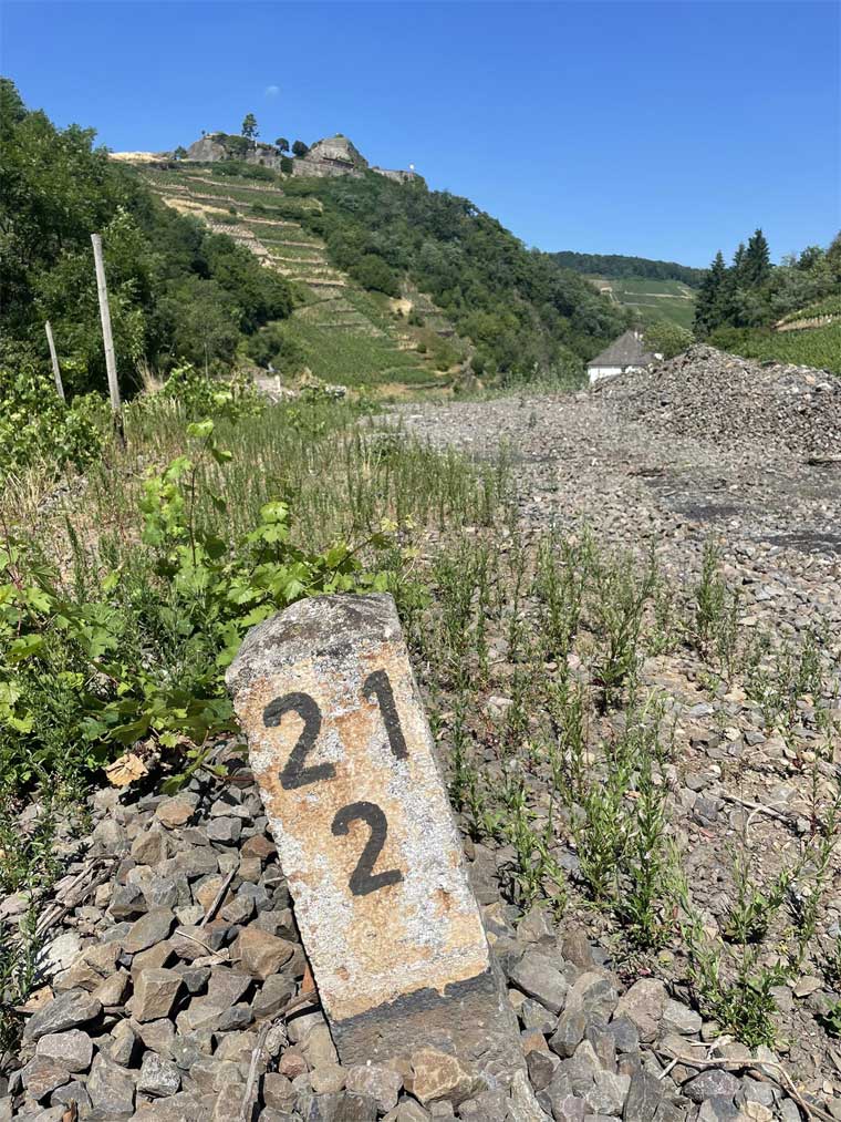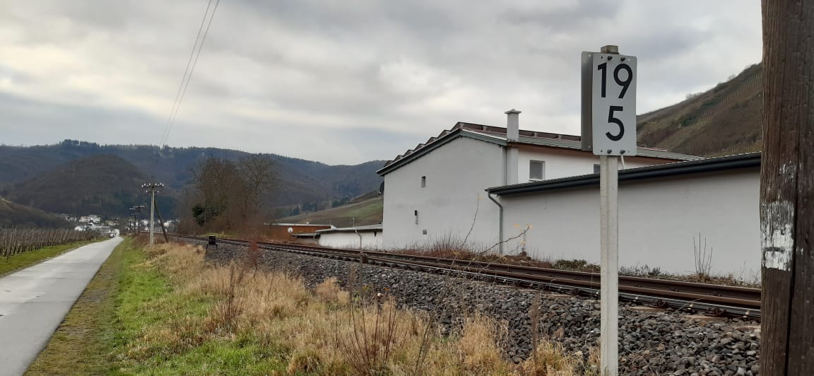 km 18,5 (Tafel und Stein) in Dernau - Blick Richtung Remagen