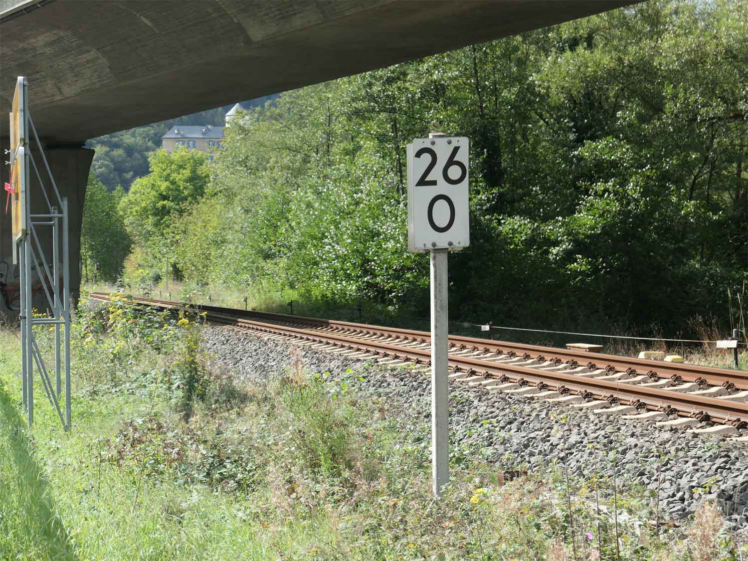km 26,4 (Stein) und km 26,5 (Tafel) in Kreuzberg - Blick Richtung Adenau