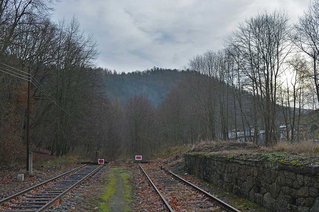 | Krásný Jez (Schönwehr) | 0,0 | km 37,646 der Strecke Mariánské Lázně (Marienbad) 0,0 - Karlovy Vary dolní nádraží (Karlsbad unt Bf) 53,275 |