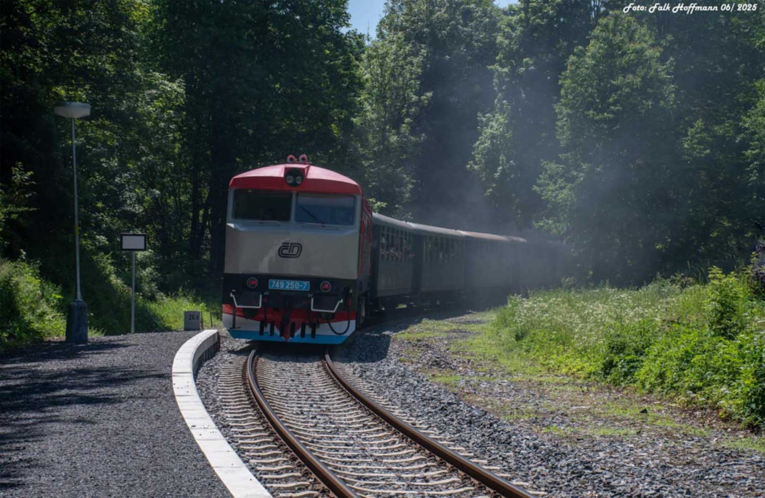 km 26,9 in Hodkov (Hodkow / Hodkov) - Blick Richtung Zruč nad Sázavou (Srutsch (Sasau) / Zruč nad Sázavou)