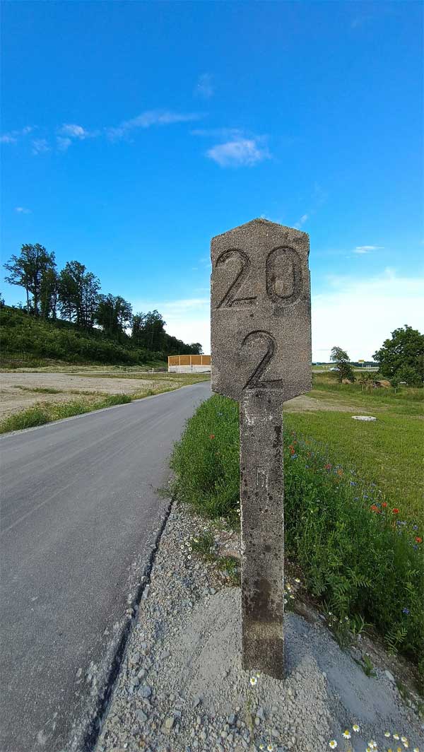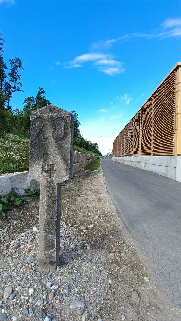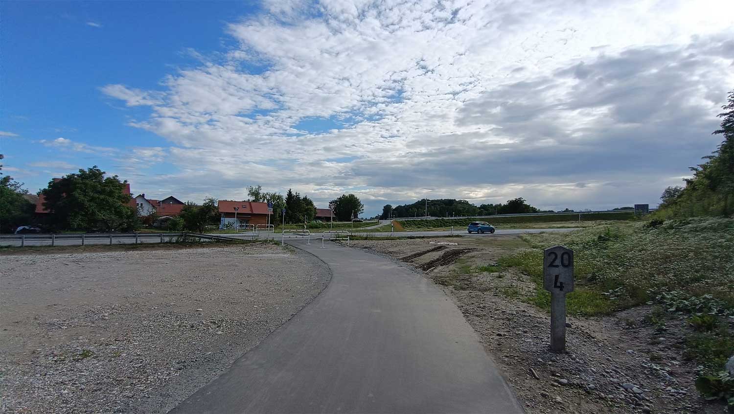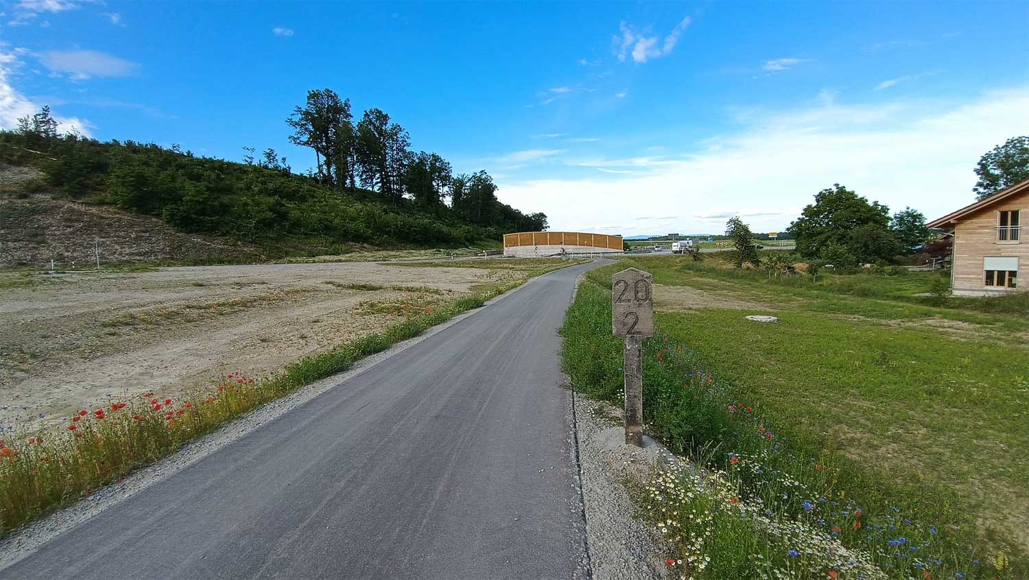 Die Bahnstrecke bzw. der spätere Radweg wurde wegen des Autobahnbaues verschoben.