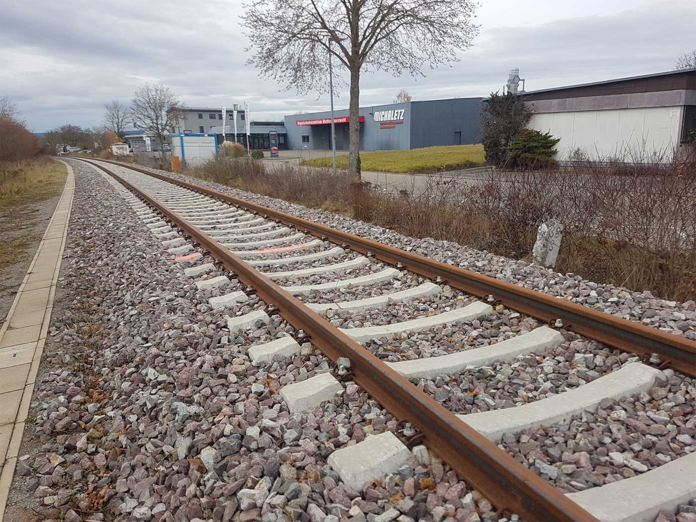 km 0,0 (Gegenrichtungsgleis) in Stuttgart-Zuffenhausen - Blick Richtung Calw
