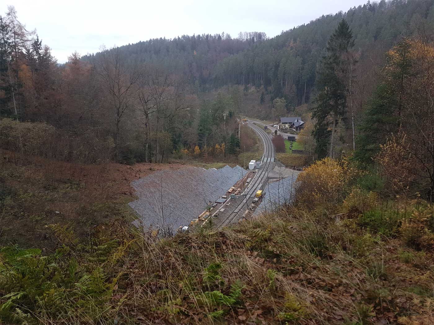 Nach links verlief die alte Strecke über die sogenannte Hacksbergschleife.