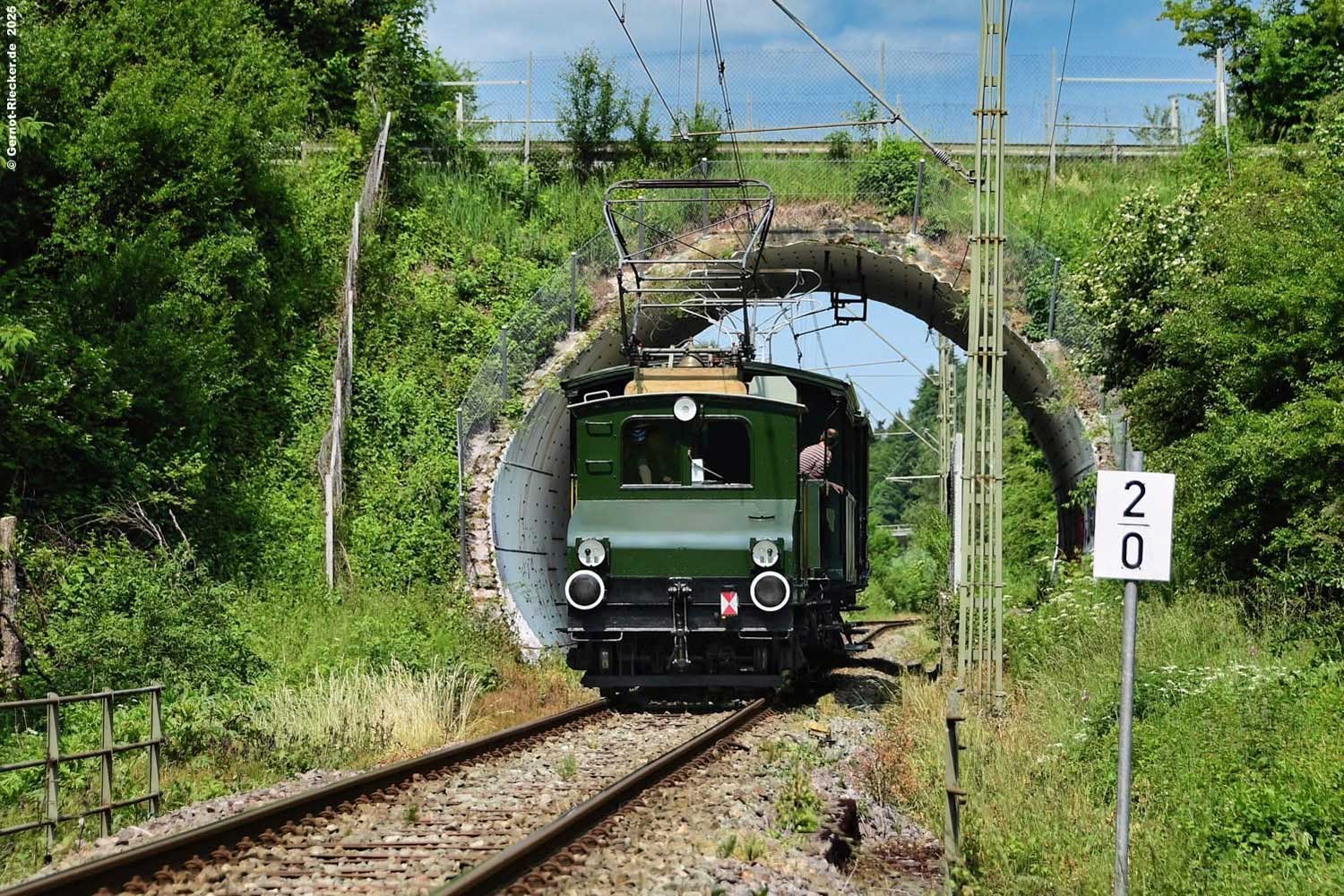 heute die „grüne Garnitur“ bestehend aus der E-Lok „Lina“ (Baujahr 1902), dem
