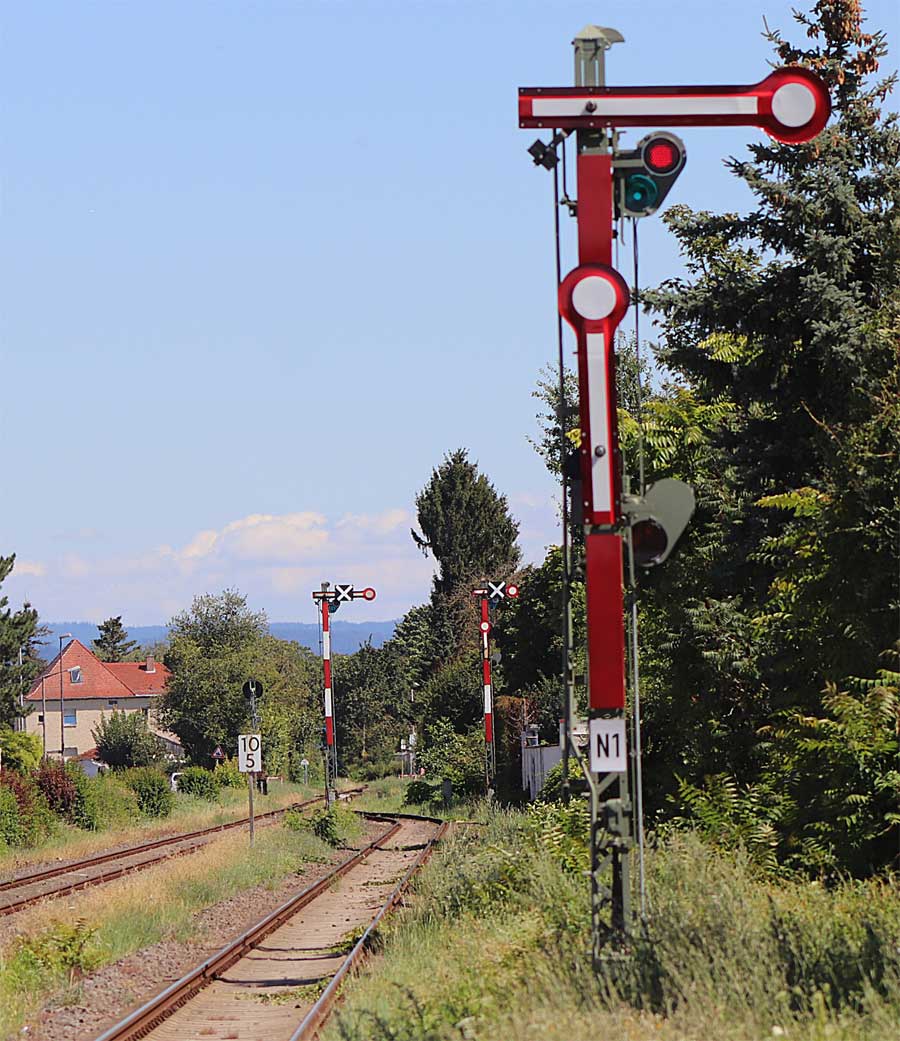 Man beachte auch Häufung der Signale am km 6,0 für die abgehende Strecke.