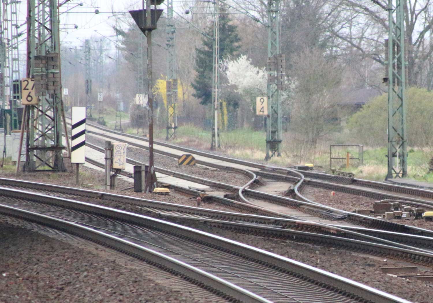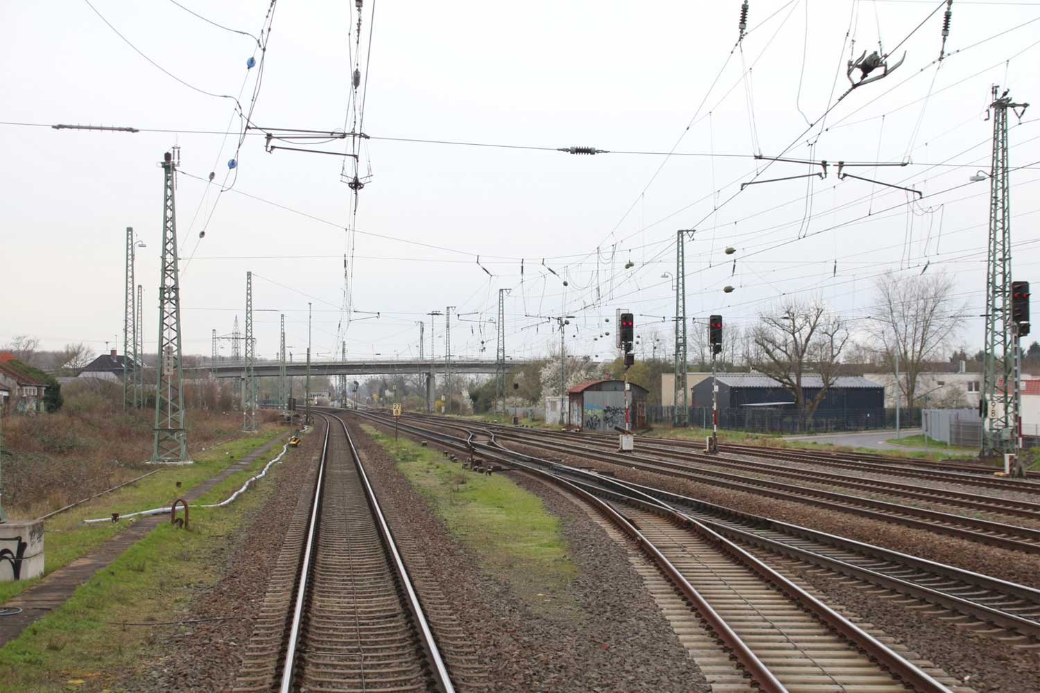 km 0,4; km 0,6 und km 0,8 in Worms Hbf - Blick Richtung Biblis