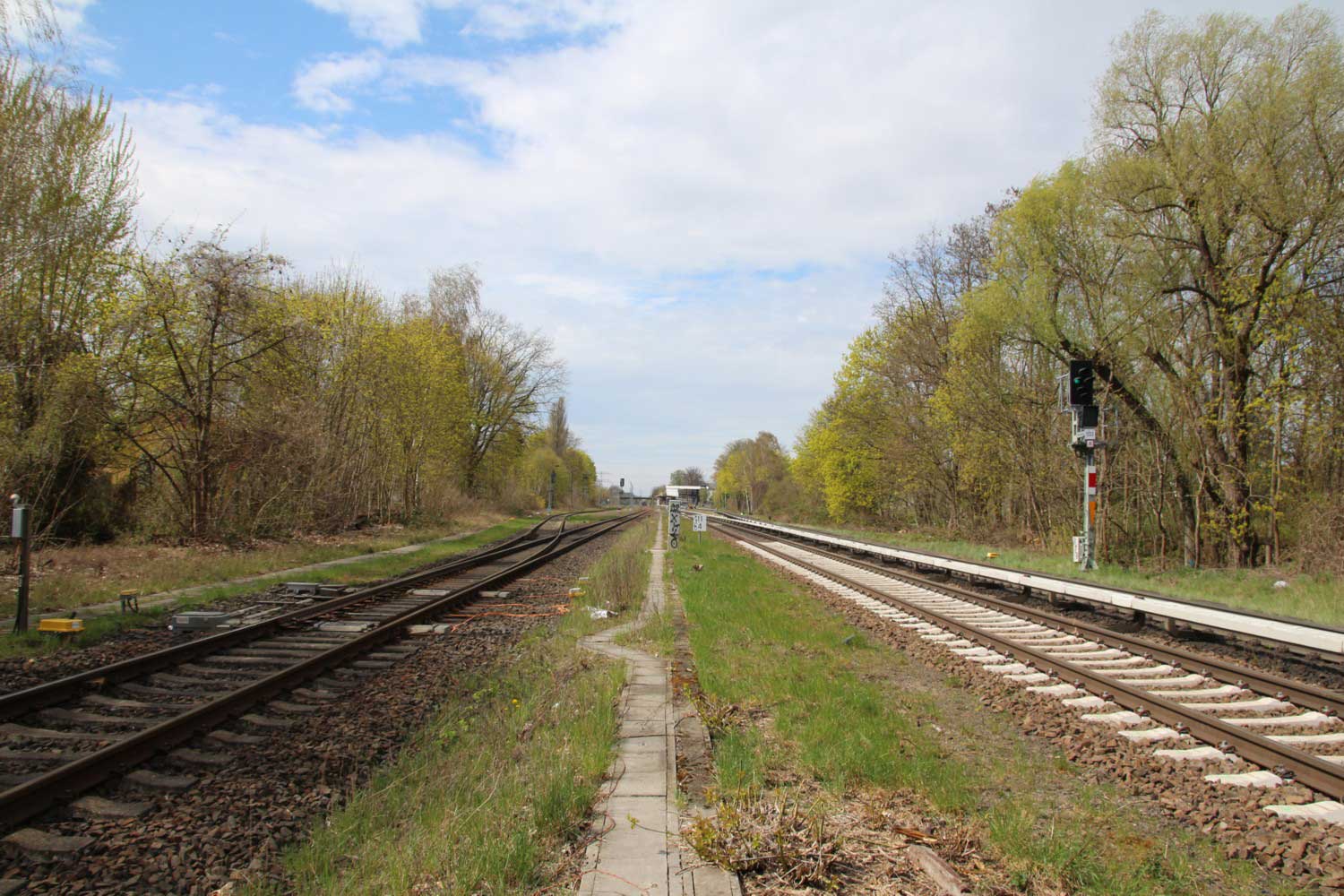 Petershagen Nord - Blick Richtung Strausberg km 24,4 (rechts) gehört zur Ostbahn (6078) Foto: Matthias Manske, April 2025