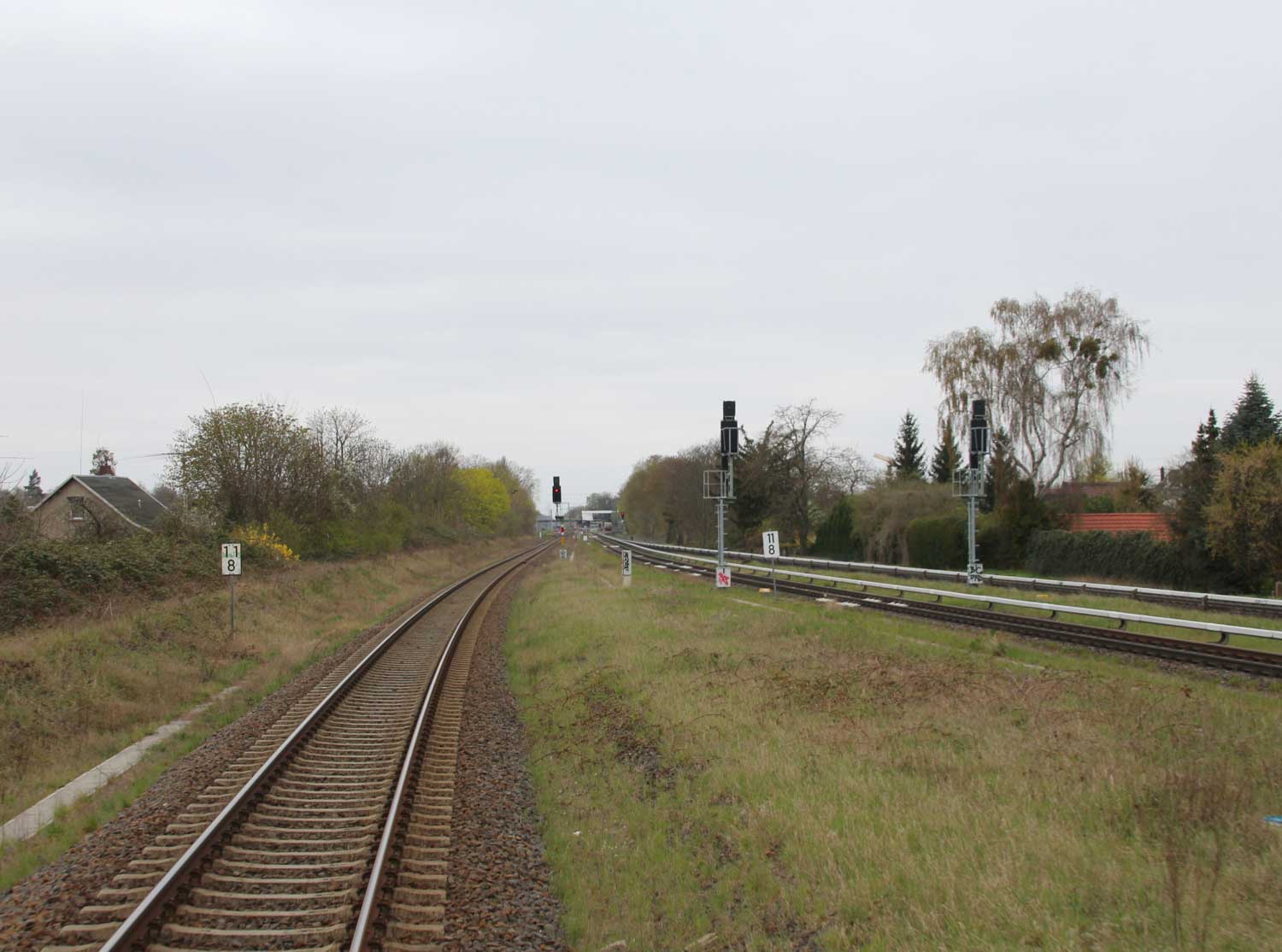 Blick Richtung Berlin km 24,8 (links) gehört zur Ostbahn (6078) Foto: Matthias Manske, April 2025