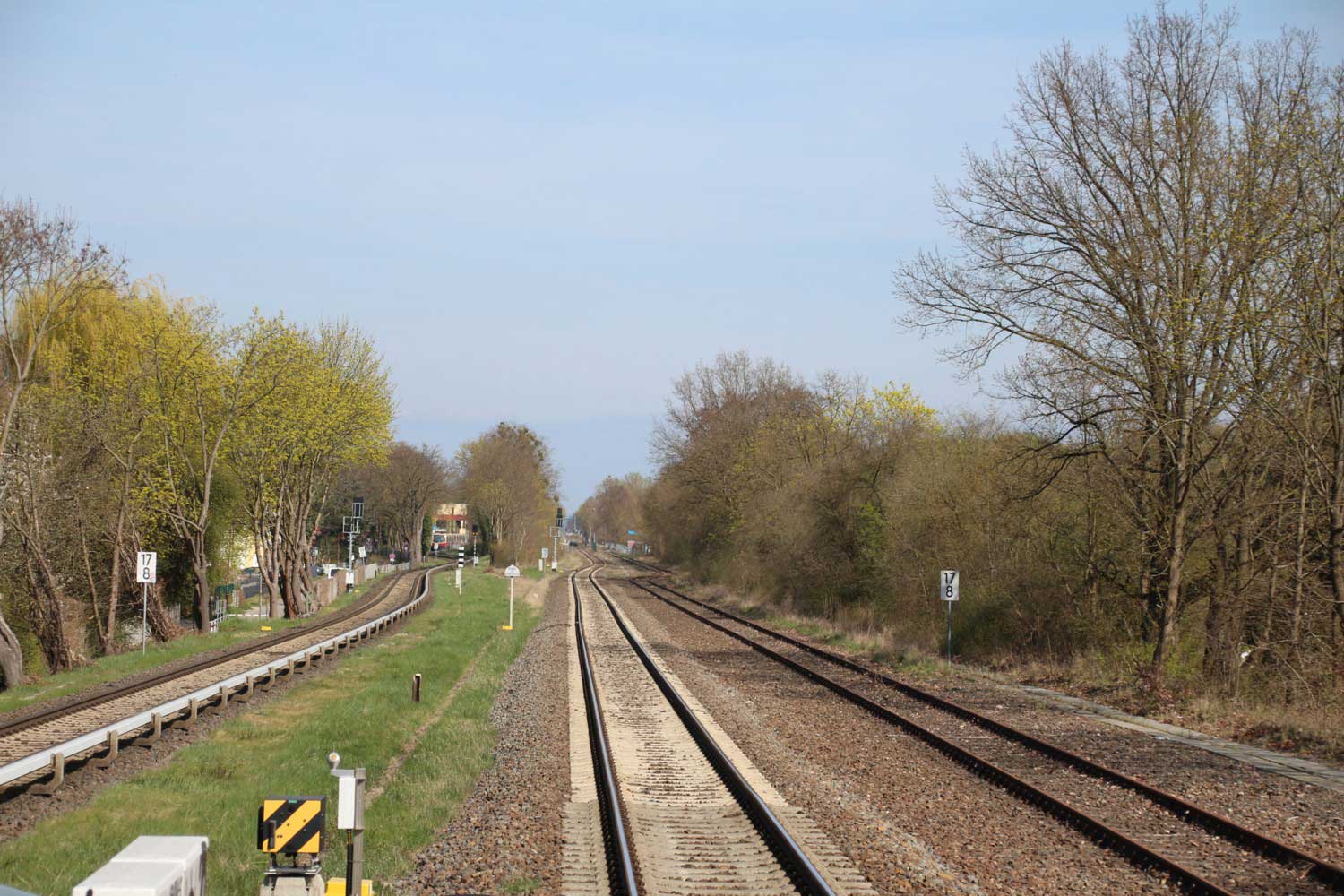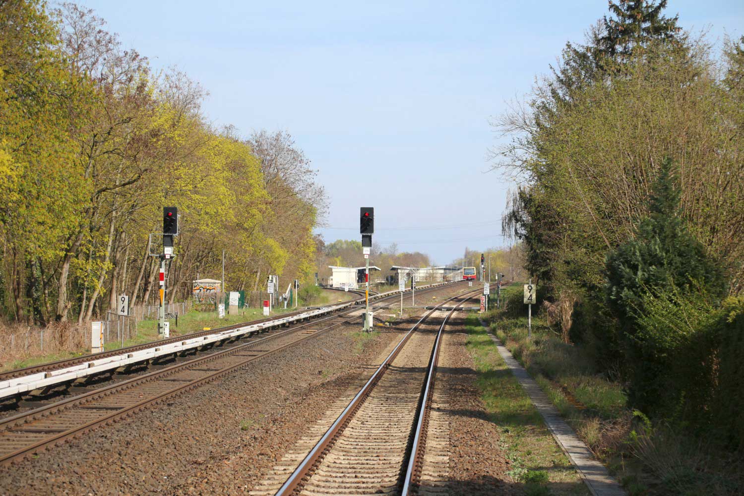 Fredersdorf (b Berlin) - Blick Richtung Berlin km 19,4 (links) gehört zur Ostbahn (6078) Foto: Matthias Manske, April 2025
