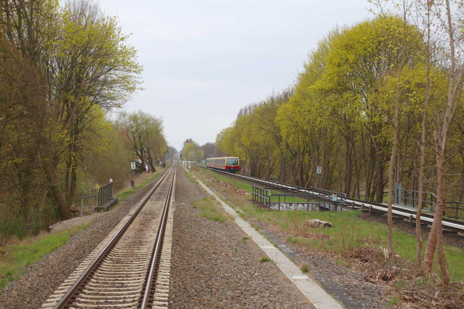 km 16,8 in Hoppegarten (Mark) - Blick Richtung Strausberg Rechts die Ostbahn (6078) Foto: Matthias Manske, April 2025