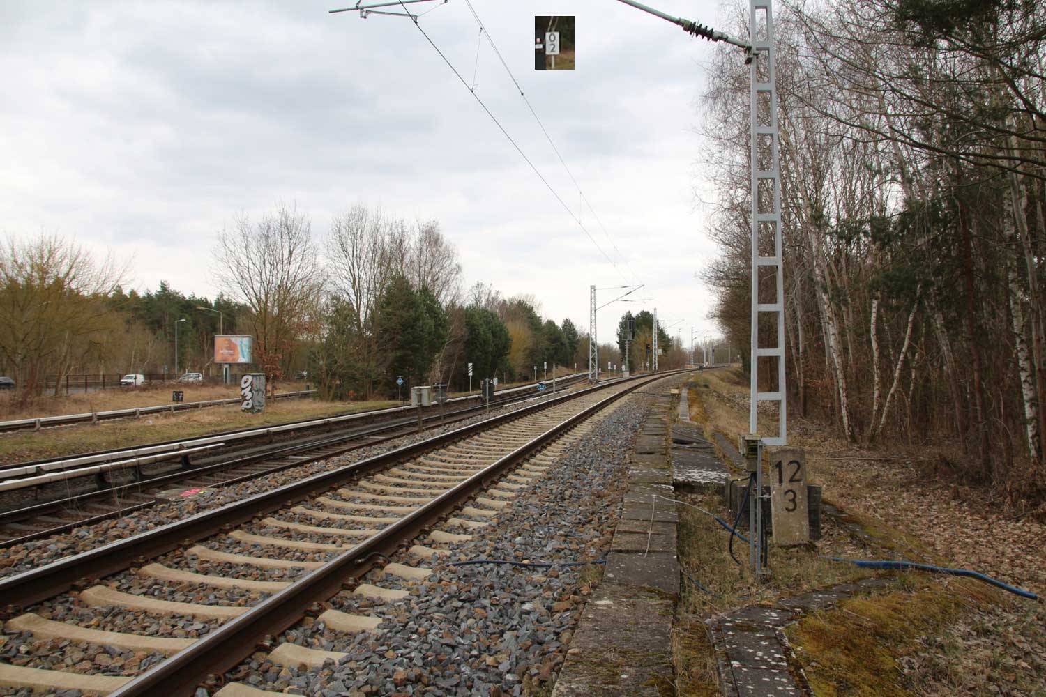 km 12,2 (Tafel) gehört zum Gegenrichtungsgleis der S-Bahn-Strecke