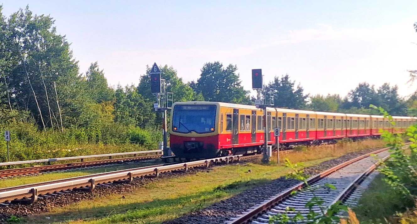 Der S-Bahn-Zug befindet sich auf der S-Bahn-Strecke