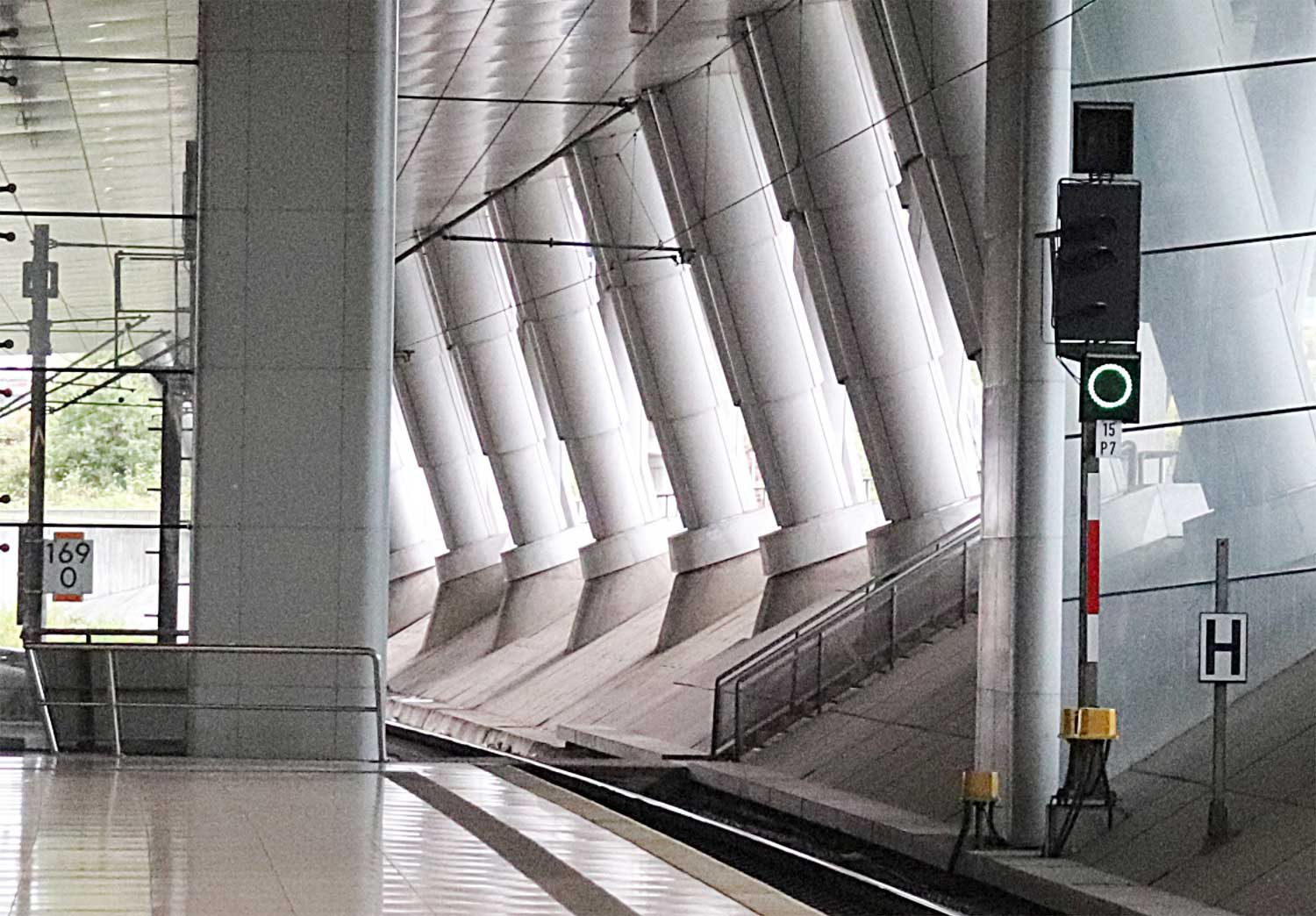 km 169,0 (Richtungsgleis) in Frankfurt (Main) Flughafen Fernbahnhof - Blick Richtung Köln