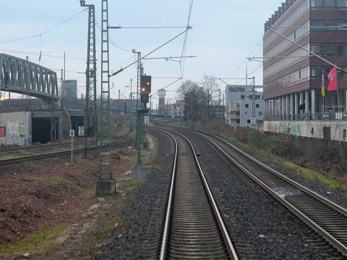 km 3,8 (Richtungsgleis) in Köln-Mülheim - Blick Richtung Köln Messe/Deutz