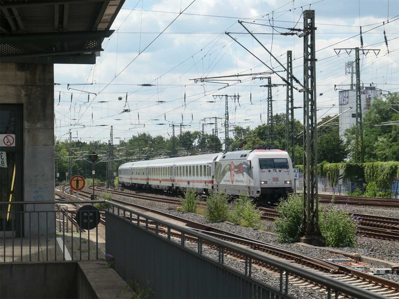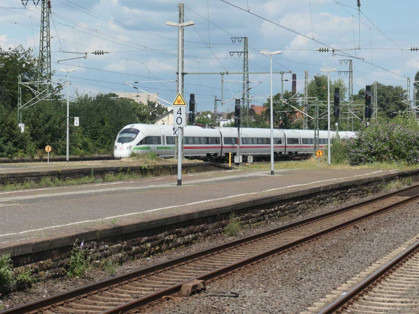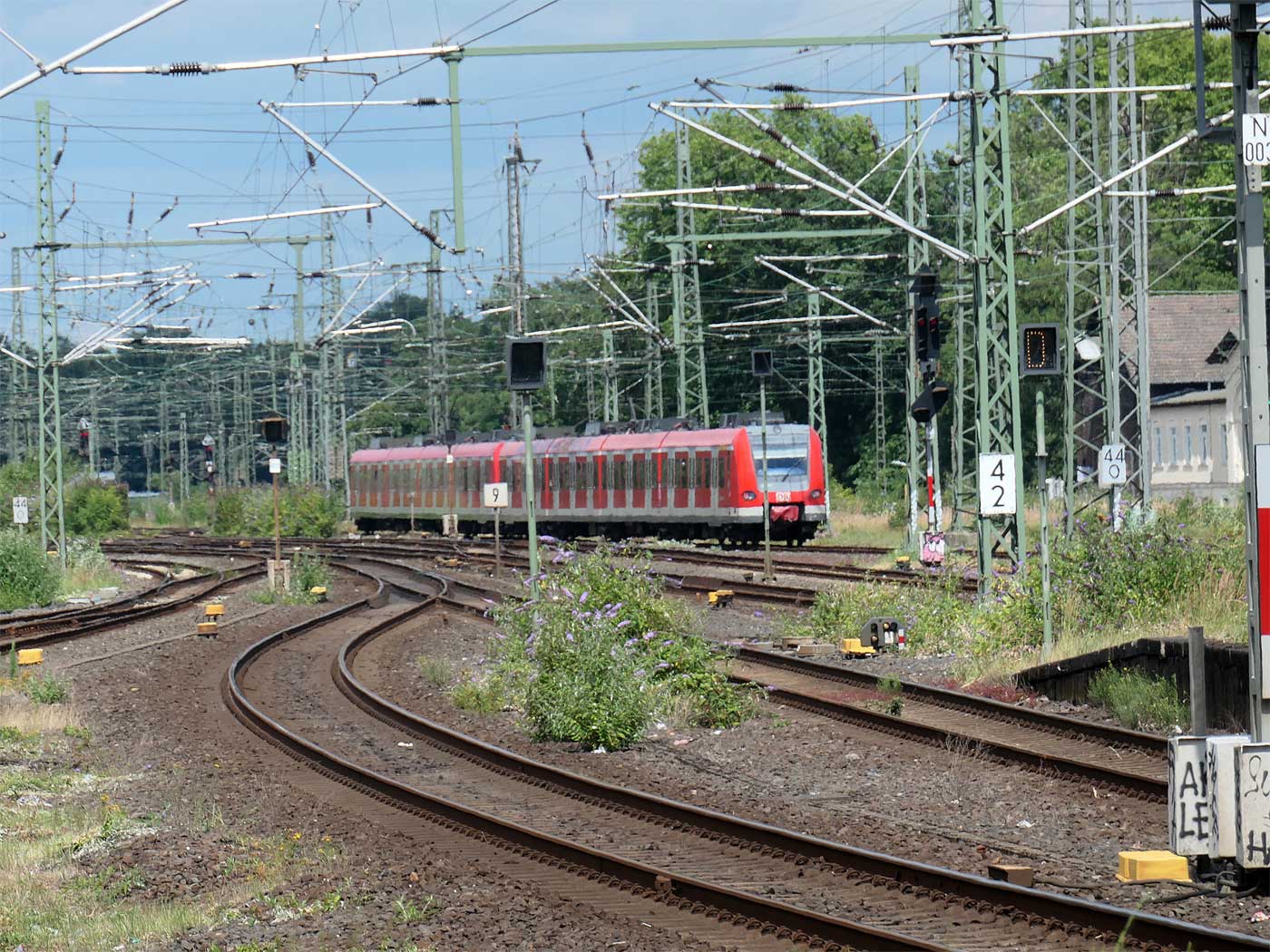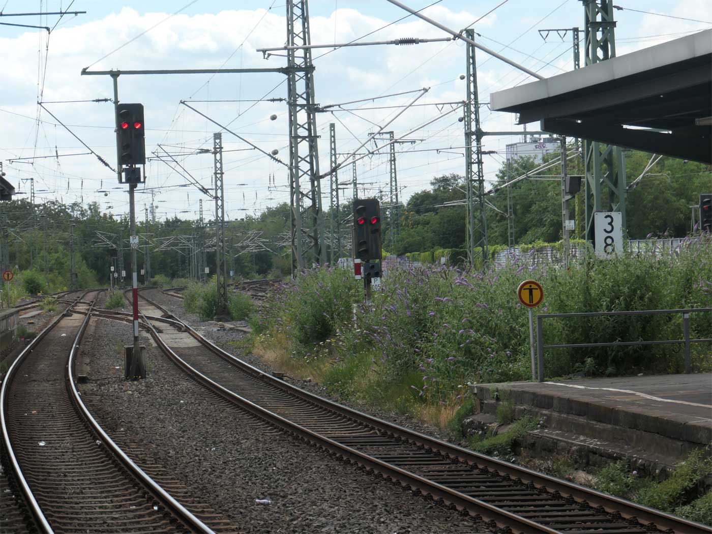 Hier die oben erwähnte Tafel km 44,0 in Köln-Mülheim mit Blickrichtung Köln