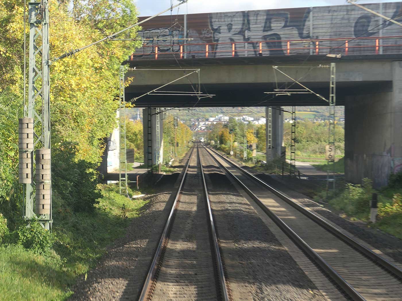 Kilometerwechsel auf der Nahebrücke - Blick Richtung Köln