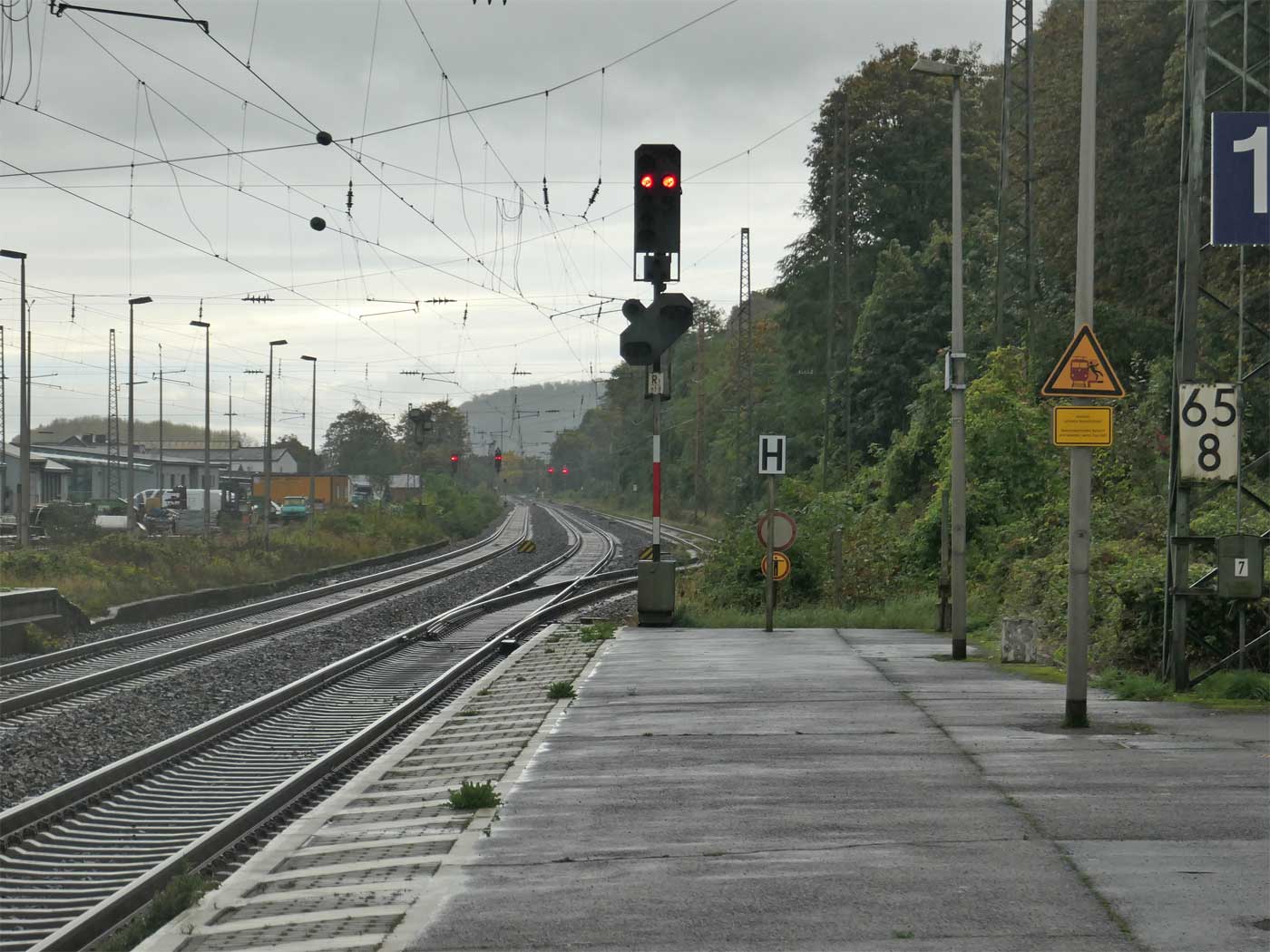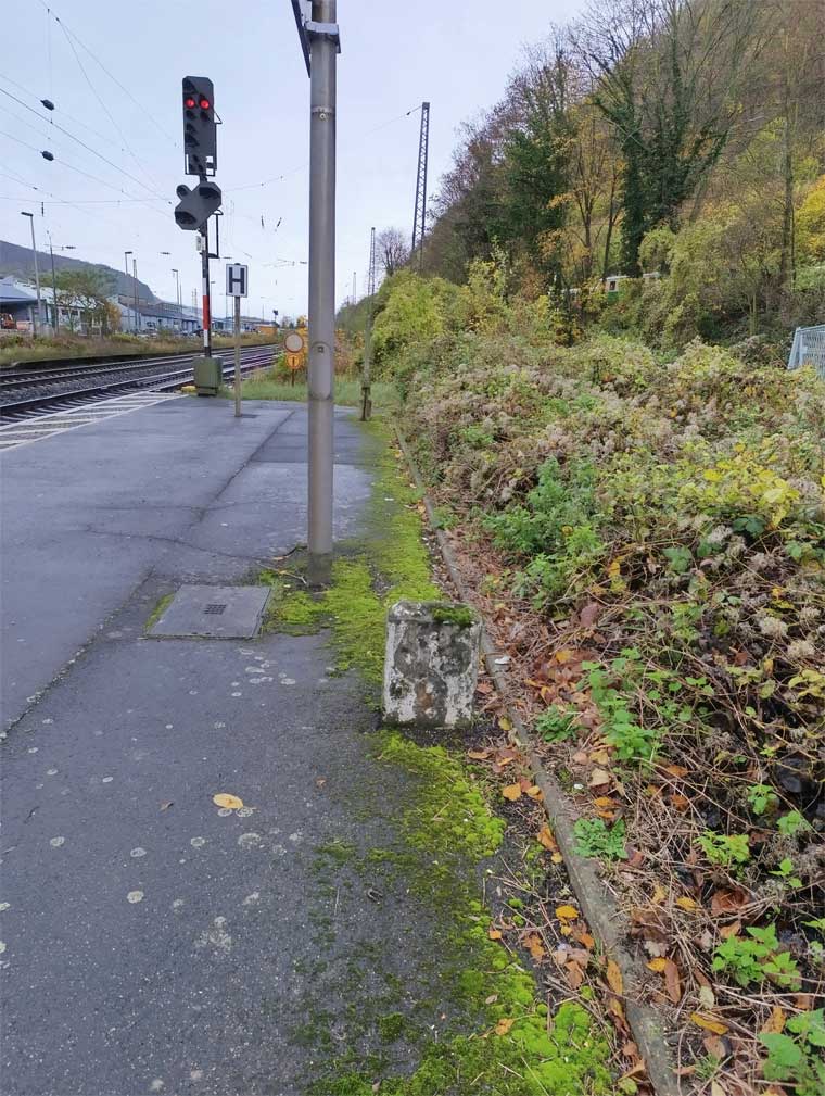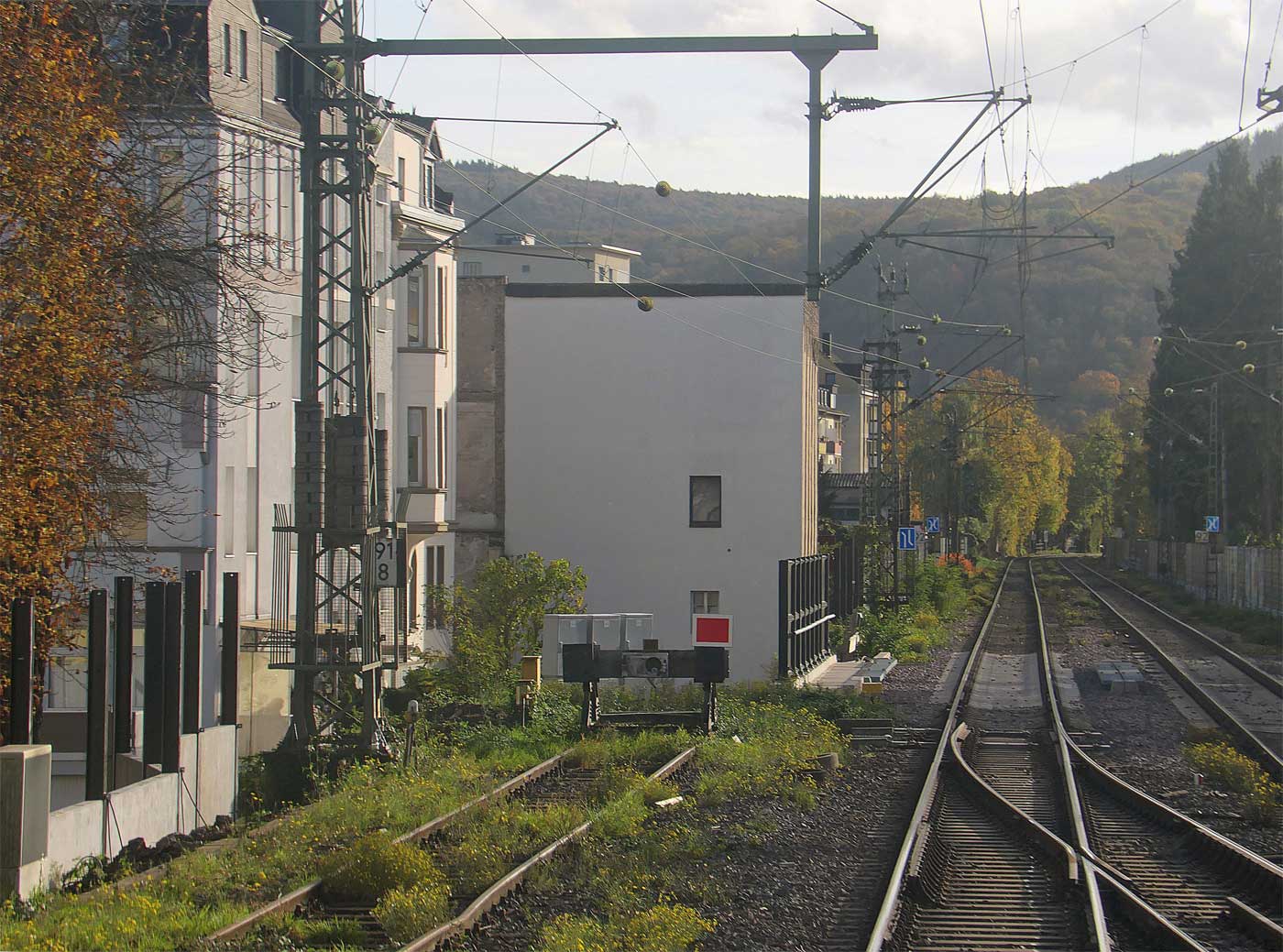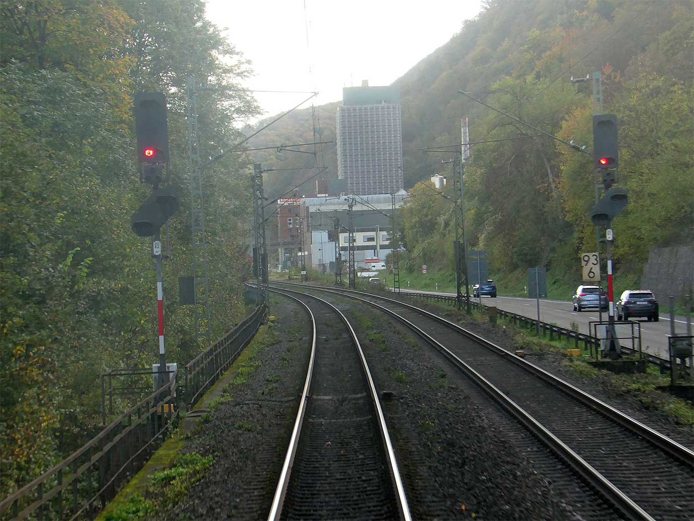 | Koblenz Hbf | 91,20 | km 103,75 der Strecke Wetzlar 0,0 - Limburg (Lahn) 52,17 - Koblenz Hbf 103,75 |