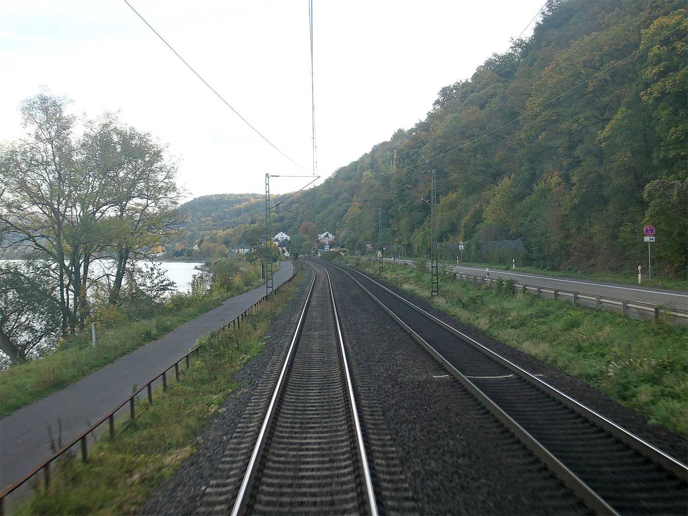 km 95,6 zwischen Königsbach (b Kapellen-Stolzenfels) und Rhens - Blick Richtung Bingerbrück/Bingen
