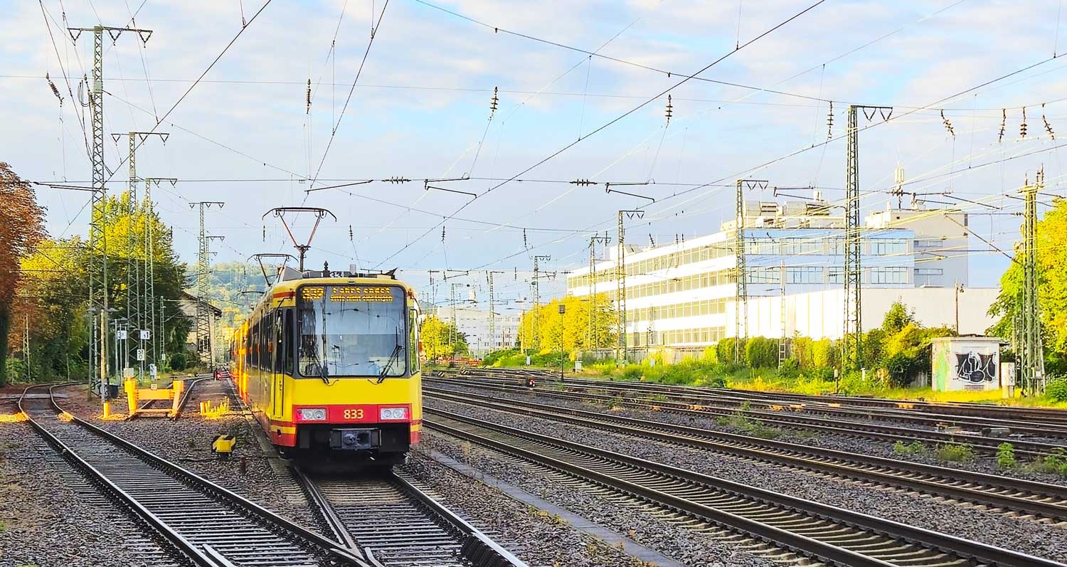 | km 54,3 der Strecke Mannheim-Kurpfalzbrücke 0,0 - Heidelberg Bismarckplatz 20,0 - Weinheim OEG 36,4 - Mannheim Hbf 54,3 (OEG/Privatbahn) | ||