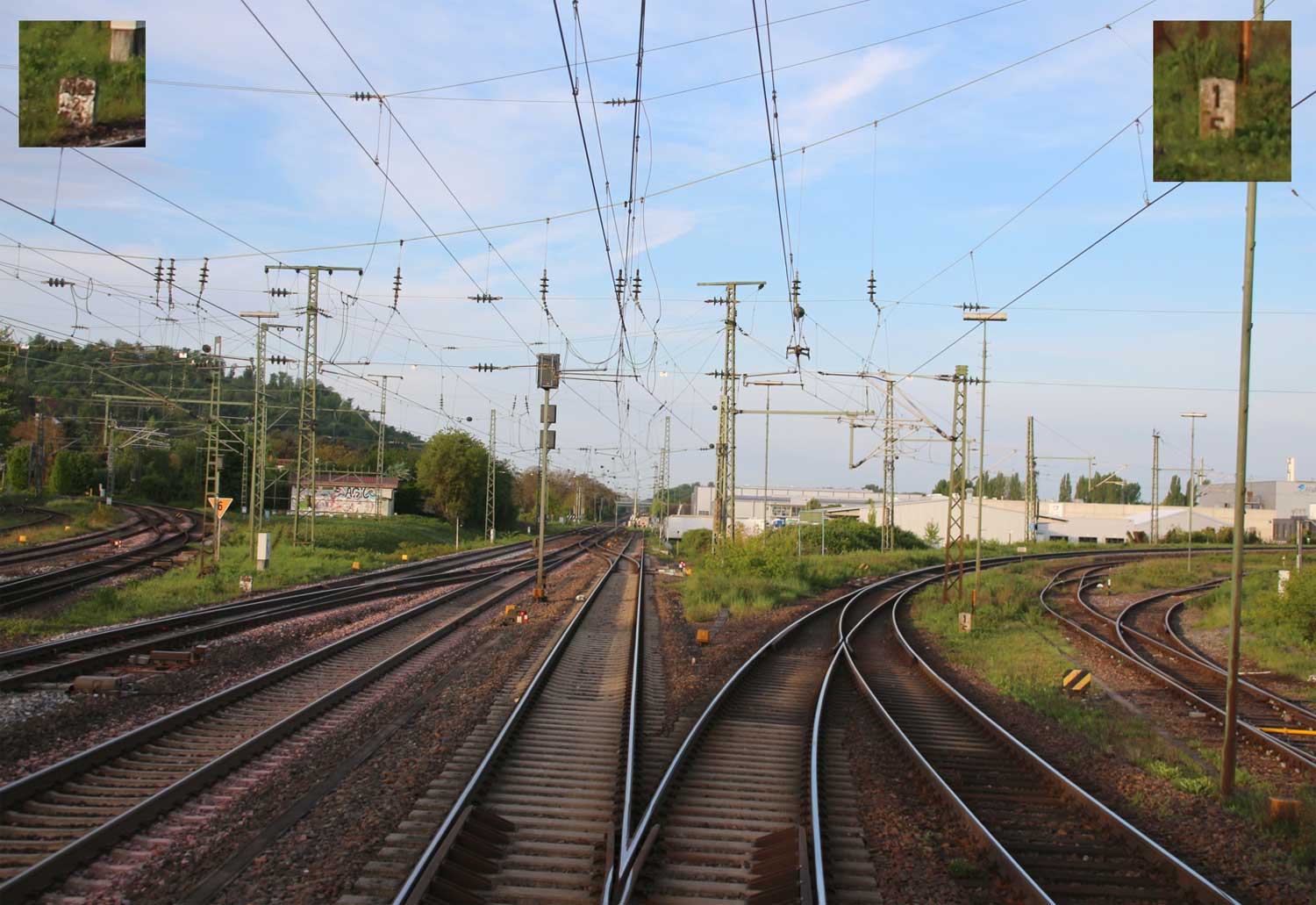km 96,6 (Stein links) und km 96,7 (Stein Mitte) in Rastatt - Blick Richtung Basel Bad Bahnhof - Konstanz
