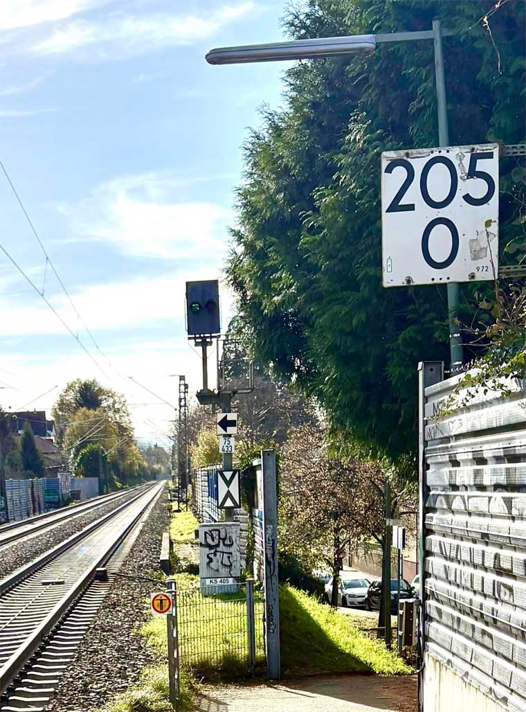 km 270,3 (Stein) in Basel Bad Bahnhof - Blick Richtung Konstanz