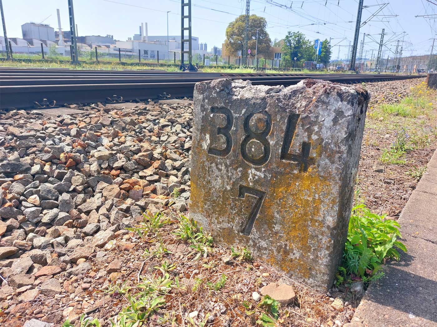 km 414,0 (Tafel und Stein) in Konstanz - Blick Richtung Mannheim