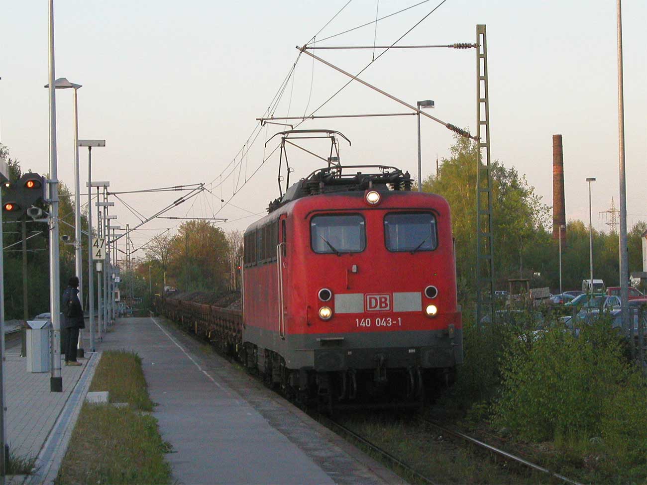 Während der leeren Kokszug noch im Bahnhof Herzogenrath einfährt, ist DB-Lok 140 259 schon wieder mit einem neuen vollen Kohlenzug auf Achse in Richtung Aachen (auf der Steigung nach Kohlscheid). Der Zug wird von der DB-Lok 140 645 nachgeschoben,