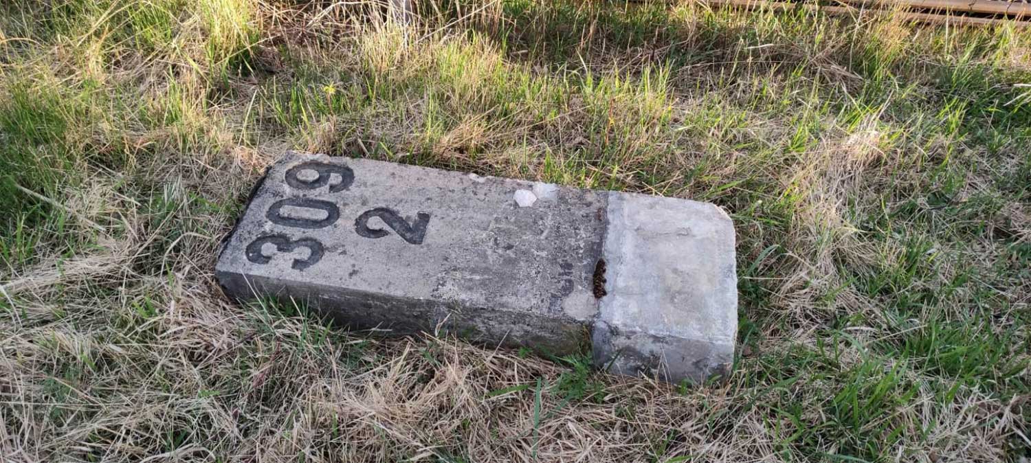 km 1,8 (Stein und Tafel) gehört zum Gegenrichtungsgleis der Strecke