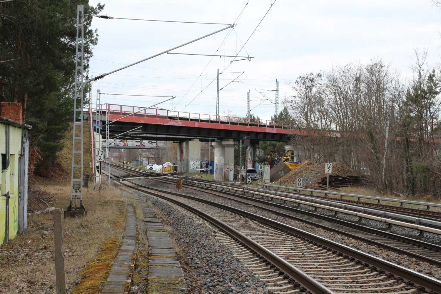 Über die Brücke führen die Gleise des Berliner Außenringes (BAR)