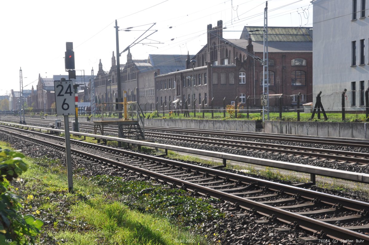 | km 79,67 der Strecke Großenhain Cottb. Bf 0,23 - Senftenberg 45,29 - Cottbus 79,67 - Frankfurt (Oder) Pbf 152,85 (Personenzuggleise)/152,79 (Güterzuggleise) | ||