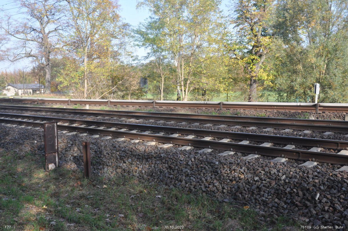 | km 173,86 der Strecke Halle (Saale) Hbf -0,31 - Eilenburg 49,27 - Falkenberg 95,07 - Cottbus 173,86 - Guben 211,53 | ||