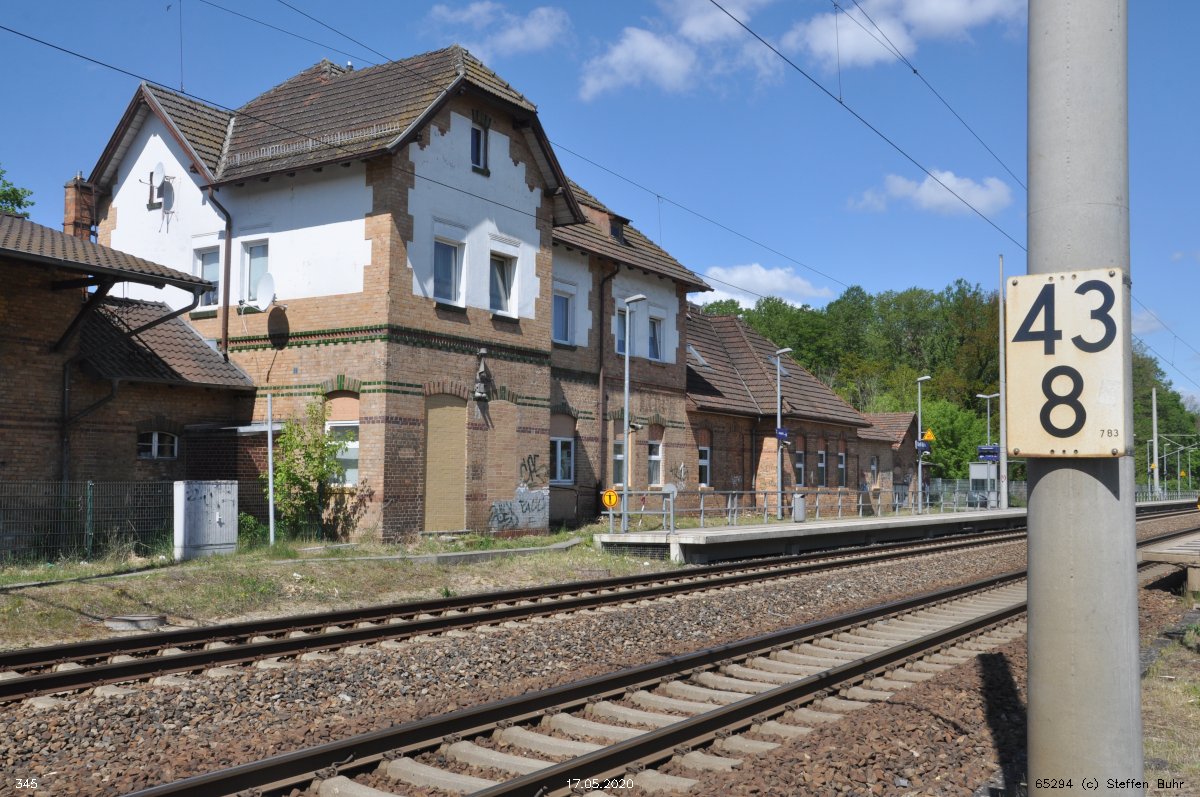 | Königs-Wusterhausen | 27,67 | km 58,04 der Strecke Grunow (Niederlaus) 0,0 - Beeskow 9,41 - Königs-Wusterhausen 58,04 |