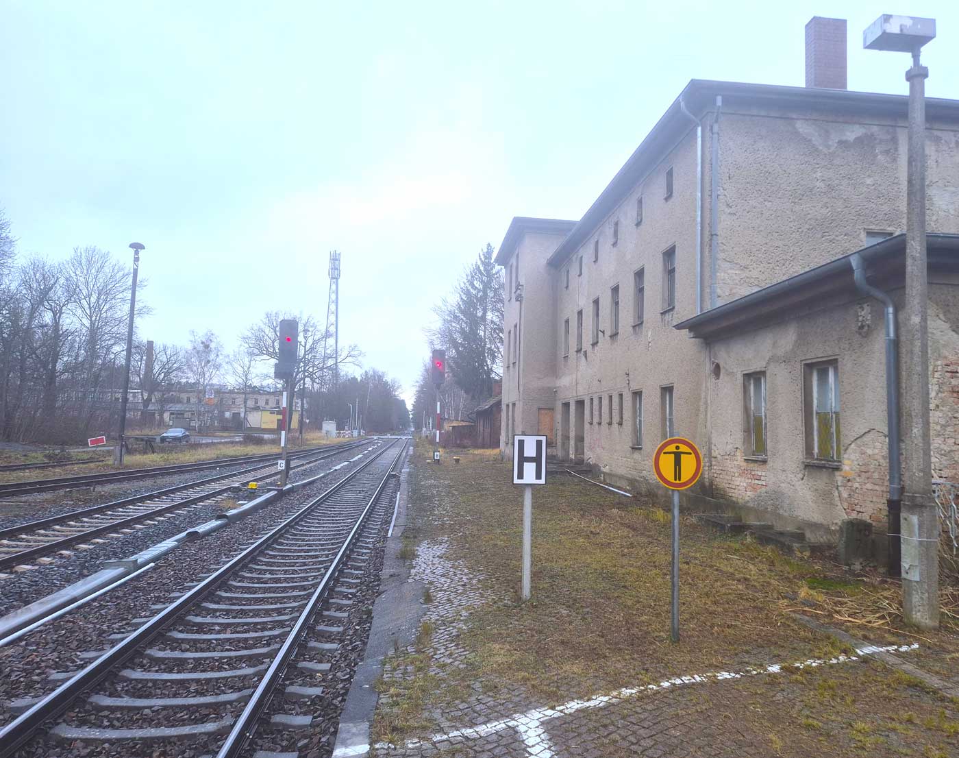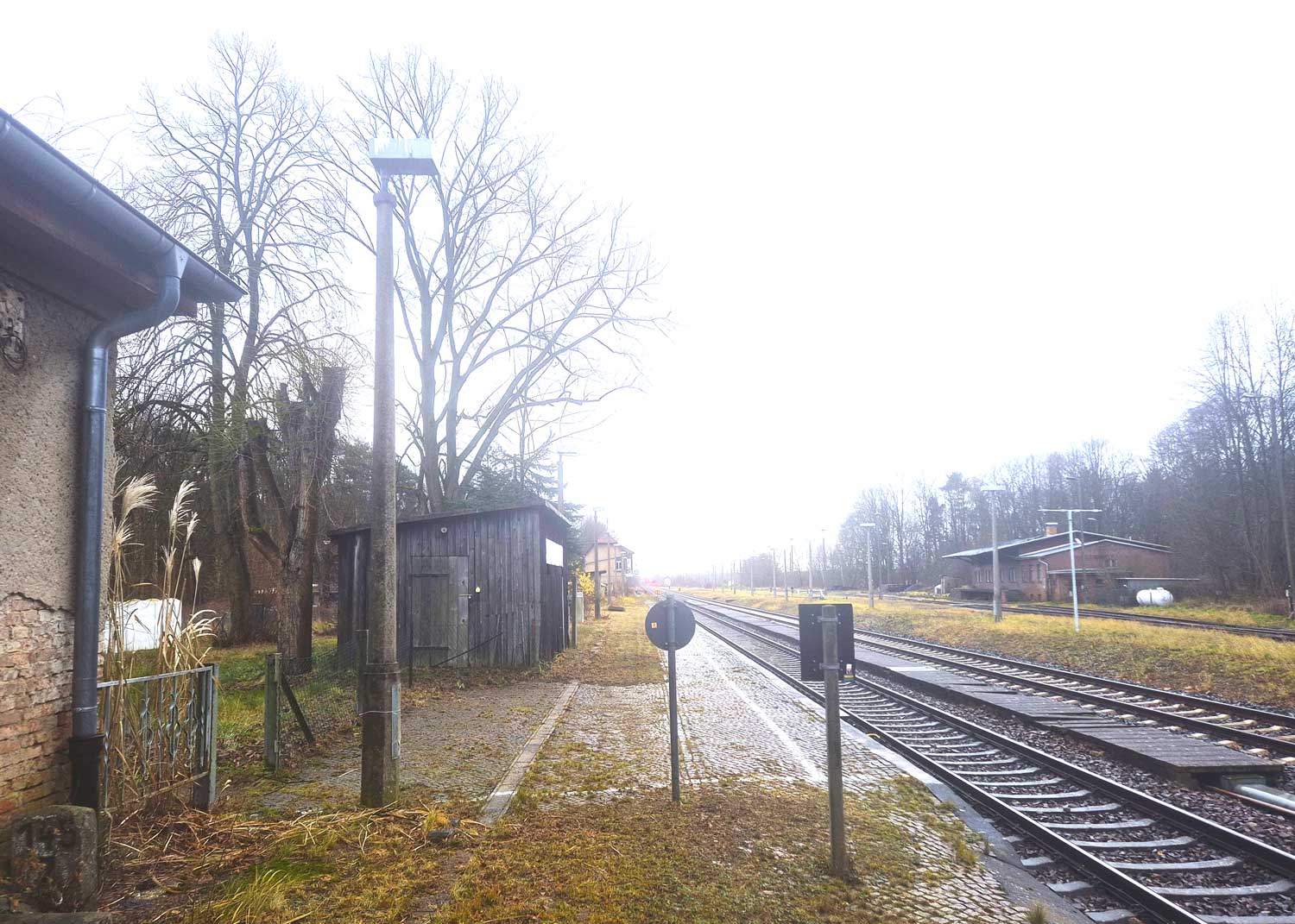 | km 87,91 der Strecke Strecke Kohlfurt 0,03 - Hoyerswerda 72,76 - Falkenberg (Elster) (unten) 147,88 - Wittenberg (Provinz Sachsen) [heute: Lutherstadt Wittenberg] 201,93 - Dessau-Roßlau [heute: Roßlau (Elbe)] 233,70 | ||