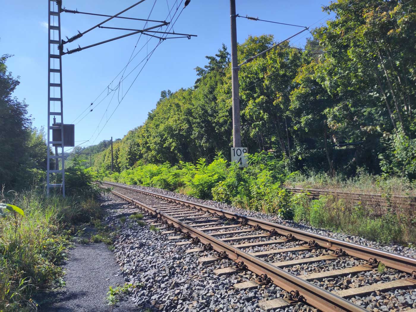 km 1,1 gehört zur Strecke Ruszów (Rauscha) 0,0 - Gozdnica (Freiwaldau) 8,422