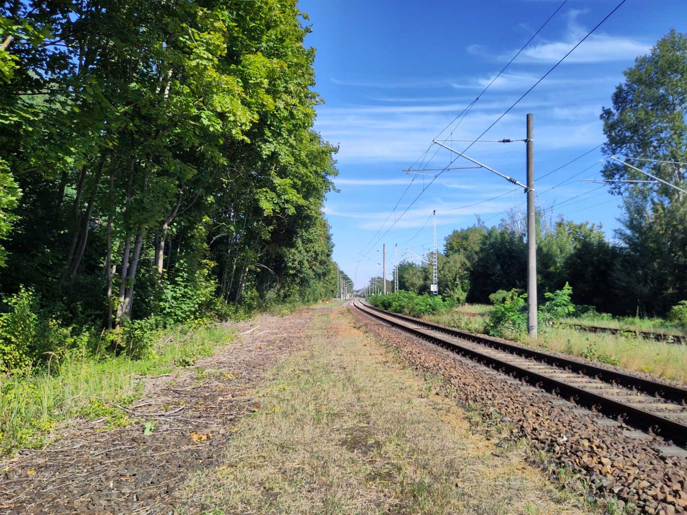 Ganz rechts im Bild ist noch das Schienenprofil der Verbindungskurve