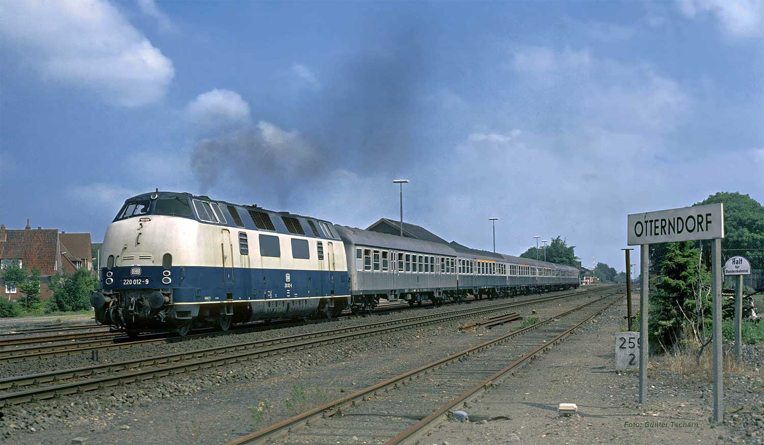 Cuxhaven, Stw. Cs am km 272,5 - 220 015 schiebt den abendlichen N 4469 aus dem Bahnhof