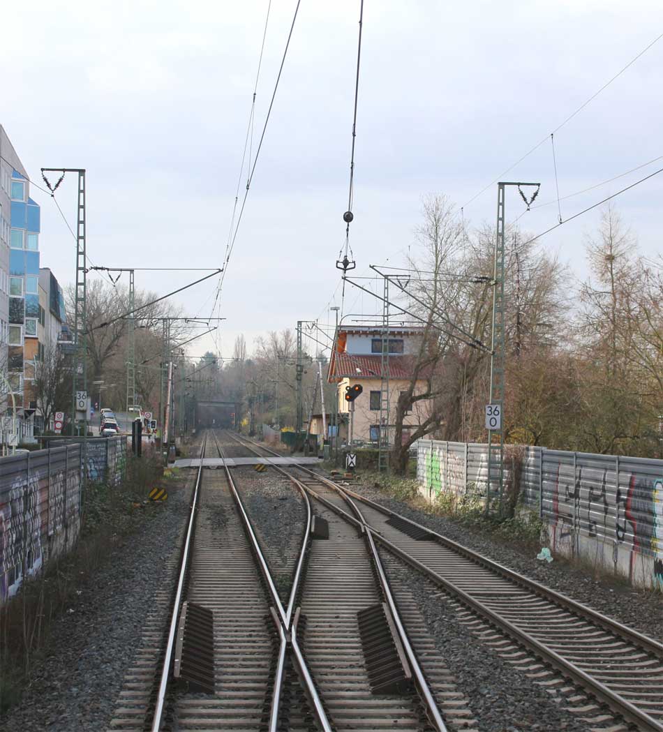 km 31,8 in Frankfurt am Main Stadion [früher: Frankfurt (Main)-Sportfeld] - Blick Richtung Frankfurt (Main) Süd