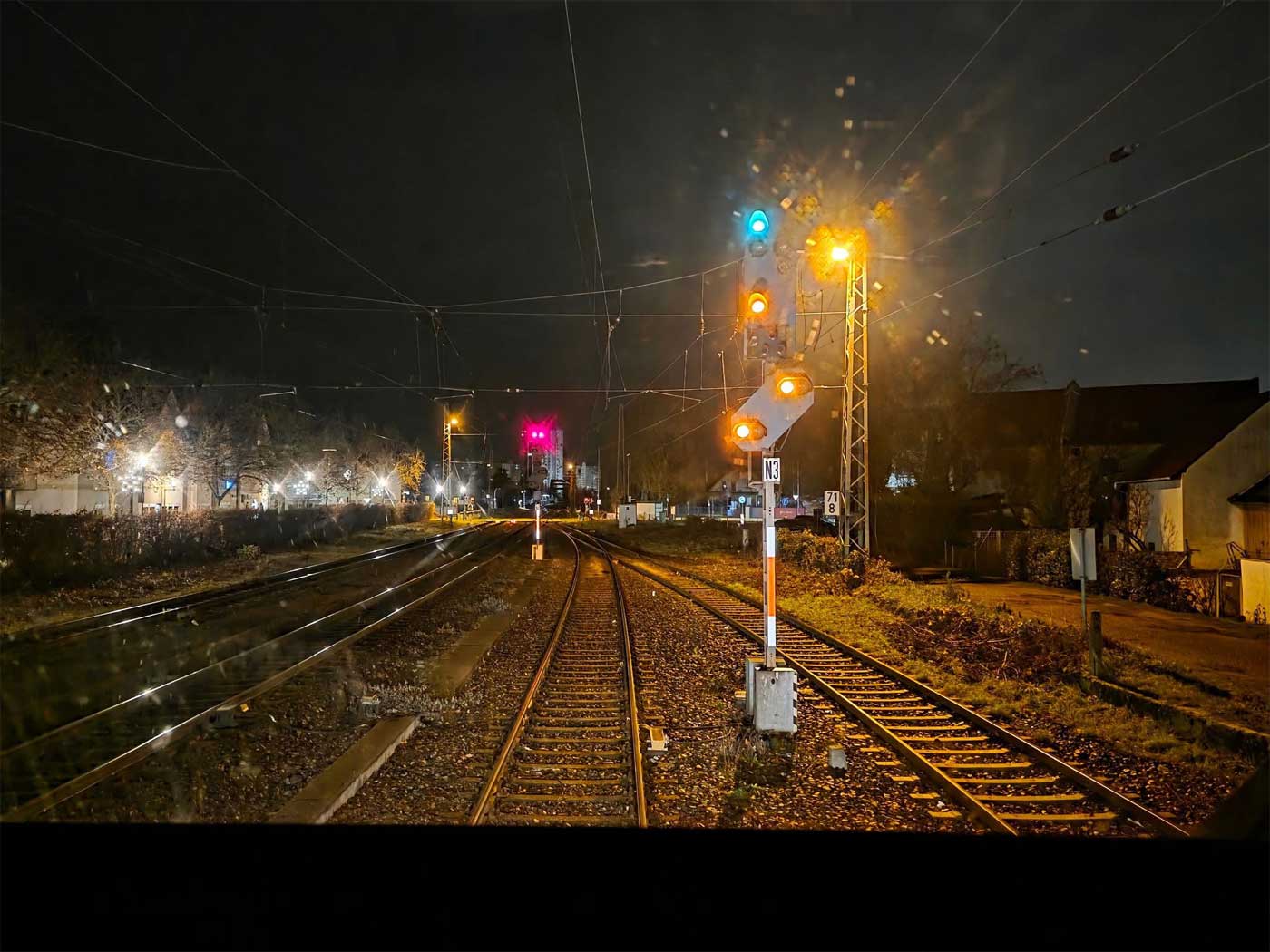 km 74,2; km 74,4 und km 74,6 zwischen Abzw Mainaschaff und Aschaffenburg Hbf - Blick Richtung Mainz