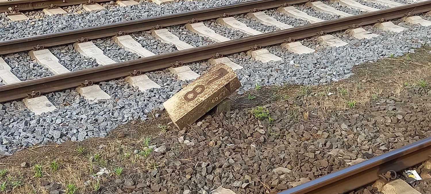 km 36,1 (Stein) hat sich etwas hinter dem Pfosten der Vorsignalbake versteckt