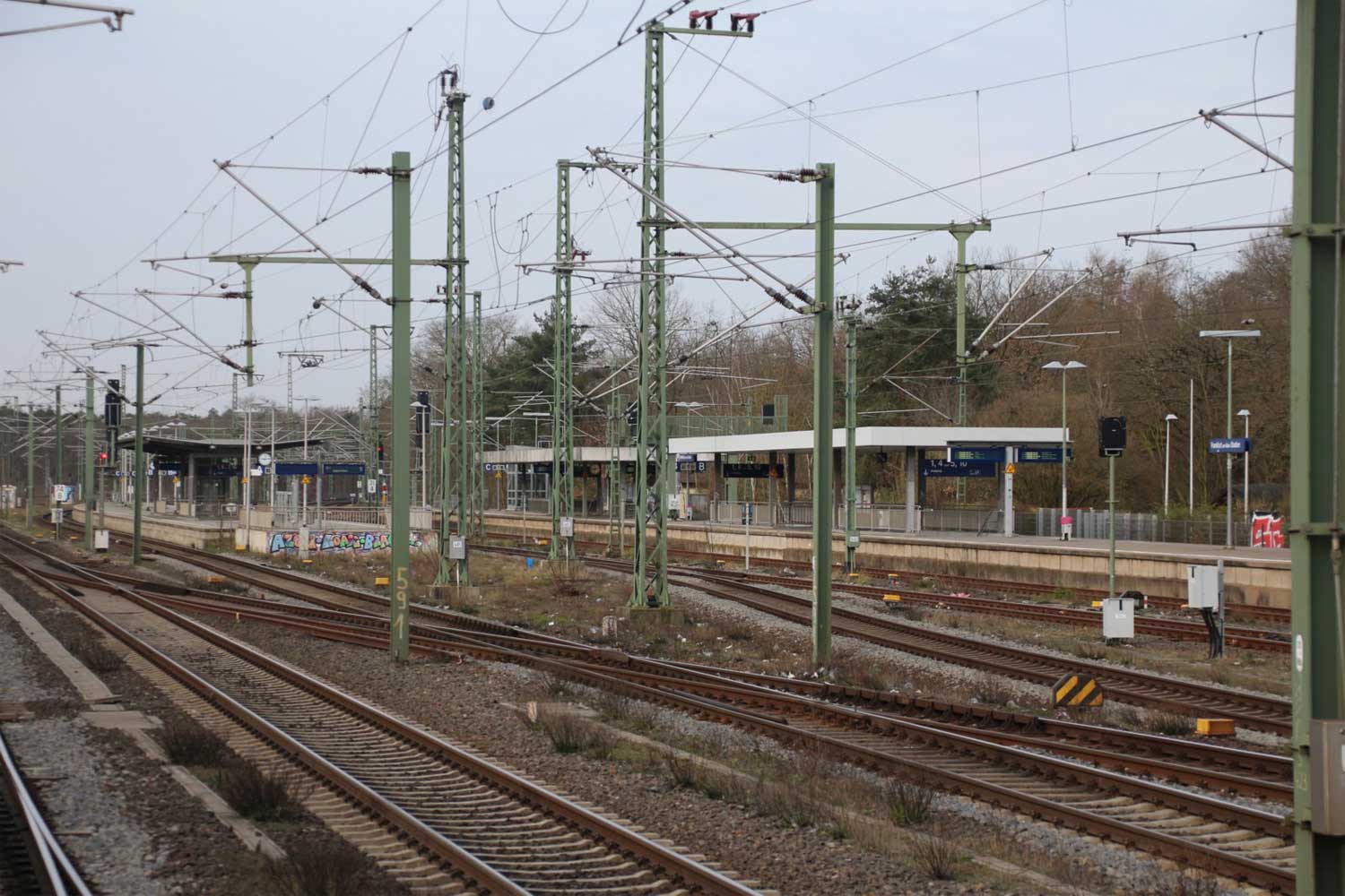 | Mainz Süd | 1,80 | km 47,29 der Strecke [Homburg (Saar) Hbf 0,0 - Kaiserslautern Hbf 43,70 - Neustadt (Weinstr) Hbf 77,21 - Ludwigshafen (Rh) Hbf 106,535 (kommend)/105,613 (gehend)] - Landesgrenze Pfalz/Hessen km 125,10 = km 0,0 - Worms 3,21 - Mainz Hbf 49,09 |